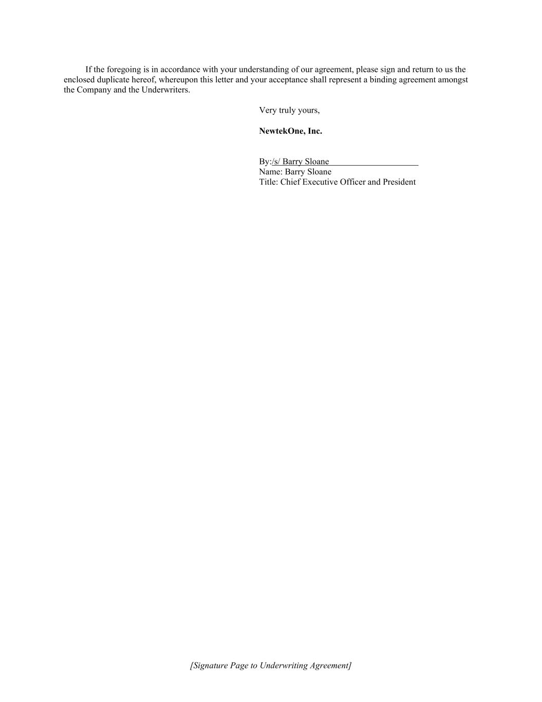 [Signature Page to Underwriting Agreement] If the foregoing is in accordance with your understanding of our agreement, please sign and return to us the enclosed duplicate hereof, whereupon this letter and your acceptance shall represent a binding agreement amongst the Company and the Underwriters. Very truly yours, NewtekOne, Inc. By:/s/ Barry Sloane Name: Barry Sloane Title: Chief Executive Officer and President