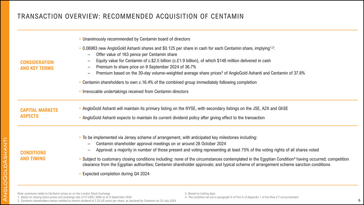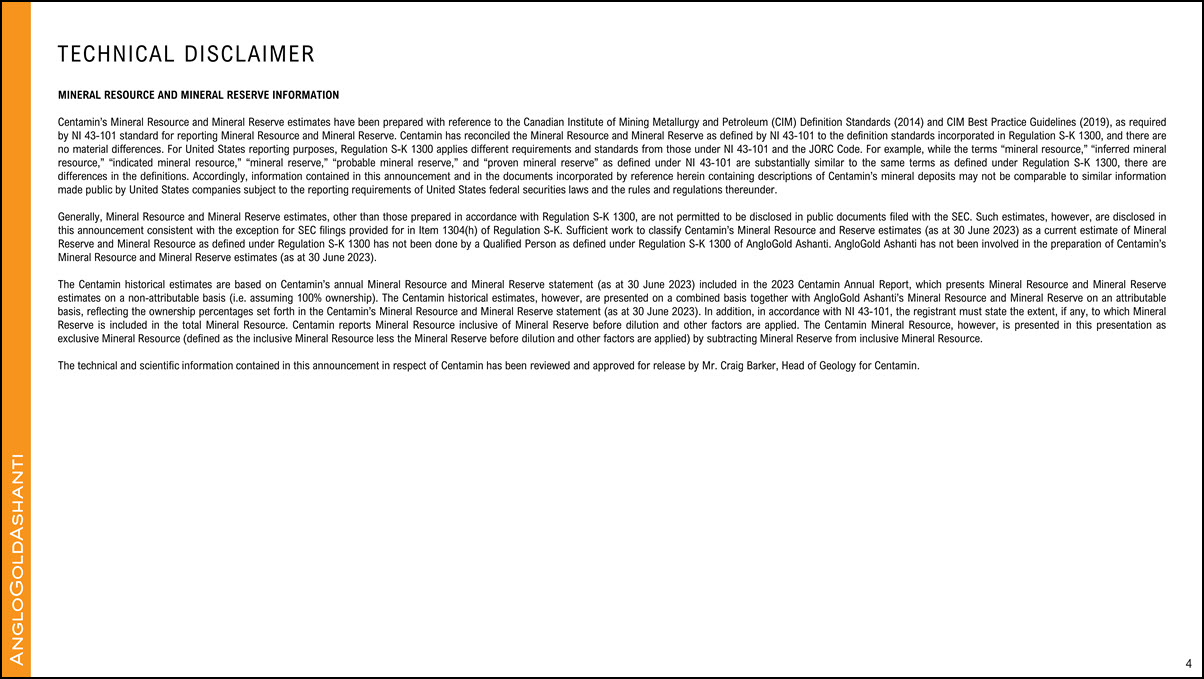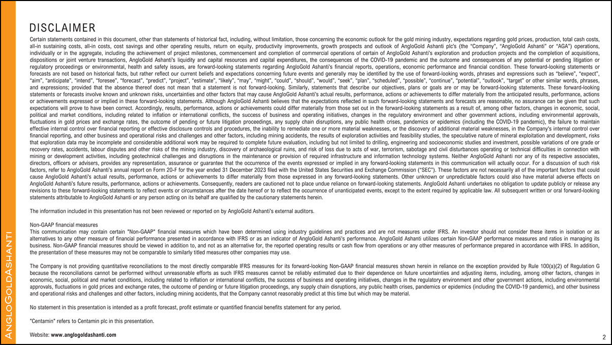 intended as a profit forecast, profit estimate or quantified financial benefits statement for any period. “Centamin” refers to Centamin plc in this presentation. Website: www.anglogoldashanti.com 2