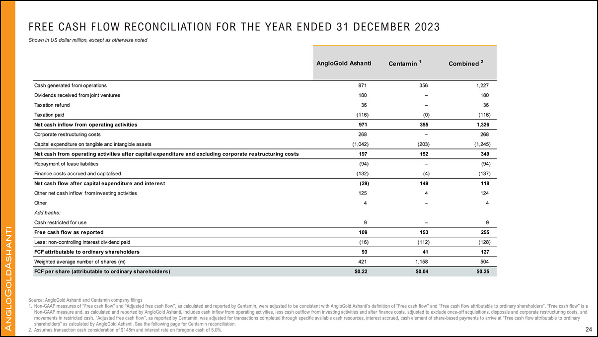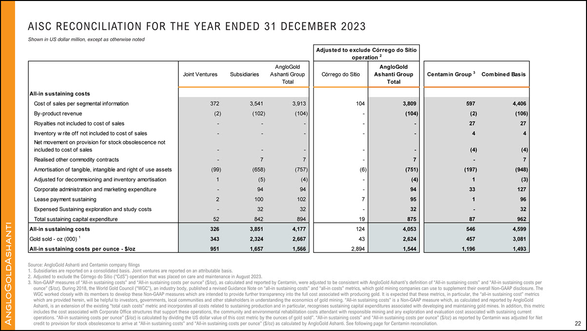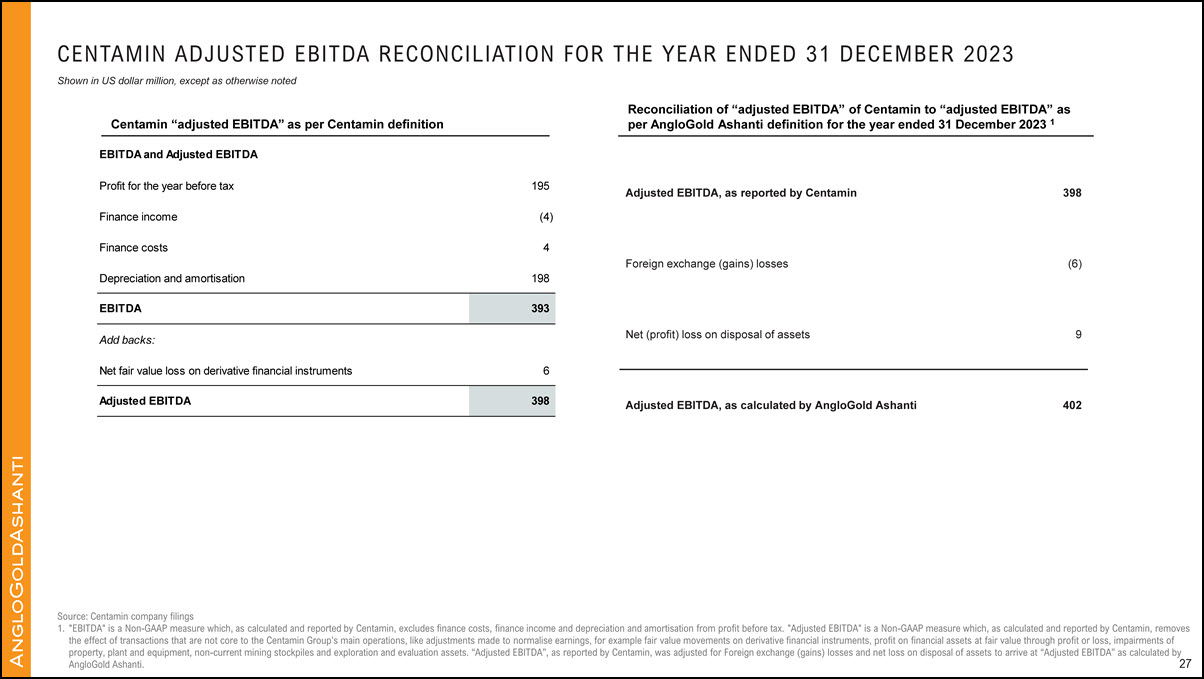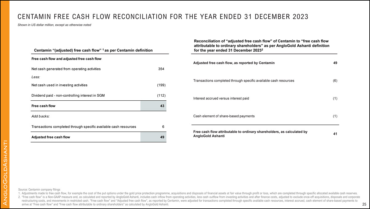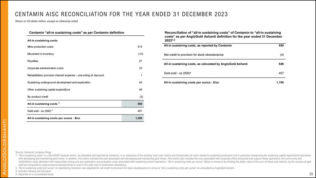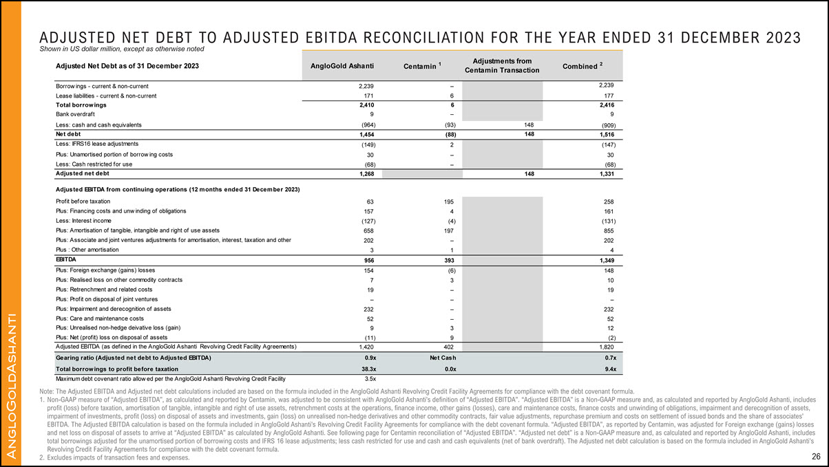 AngloGold Ashanti’s performance. AngloGold Ashanti utilizes certain Non-GAAP performance measures and ratios in managing its business. Non-GAAP financial measures should be viewed in addition to, and not as an alternative for, the reported