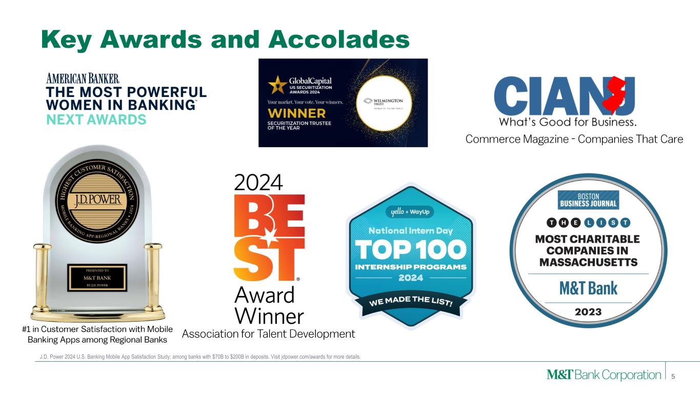 5 J.D. Power 2024 U.S. Banking Mobile App Satisfaction Study; among banks with $70B to $200B in deposits. Visit jdpower.com/awards for more details. Key Awards and Accolades