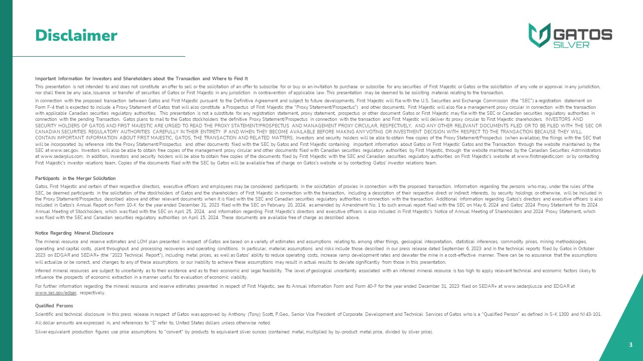 First Majestic, Gatos and certain of their respective directors, executive officers and employees may be considered participants in the solicitation of proxies in connection with the proposed Transaction.