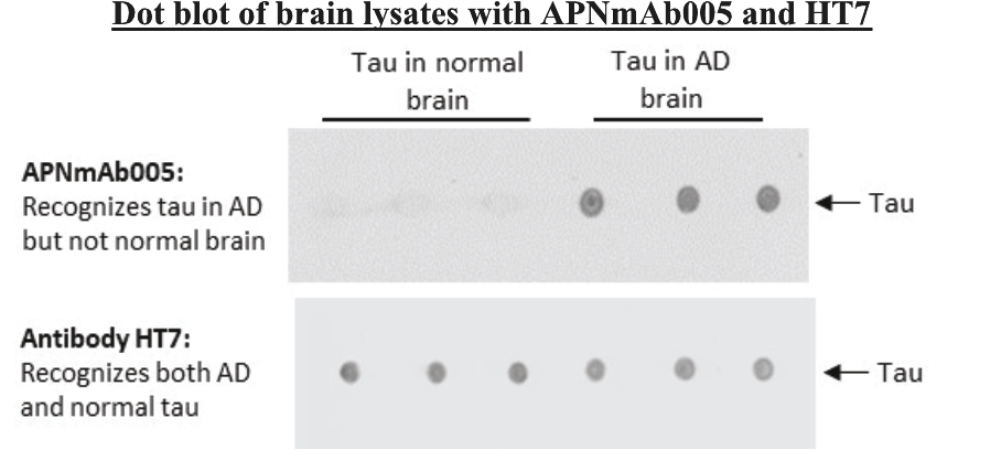 • | Our lead therapeutic product candidate (APNmAb005). APNmAb005 is a humanized anti-tau antibody and our most clinically advanced therapeutic product candidate. APNmAb005 is designed to preferentially bind pathological tau aggregates, not normal tau, that accumulate at the neuronal synapses with disease. In addition, based on preclinical studies we conducted, APNmAb005 recognizes a three-dimensional conformation-dependent epitope that is only present in tau abnormal aggregates but not in normal tau protein, thus suggesting this product candidate may achieve a high level of selectivity for pathological forms of tau. |