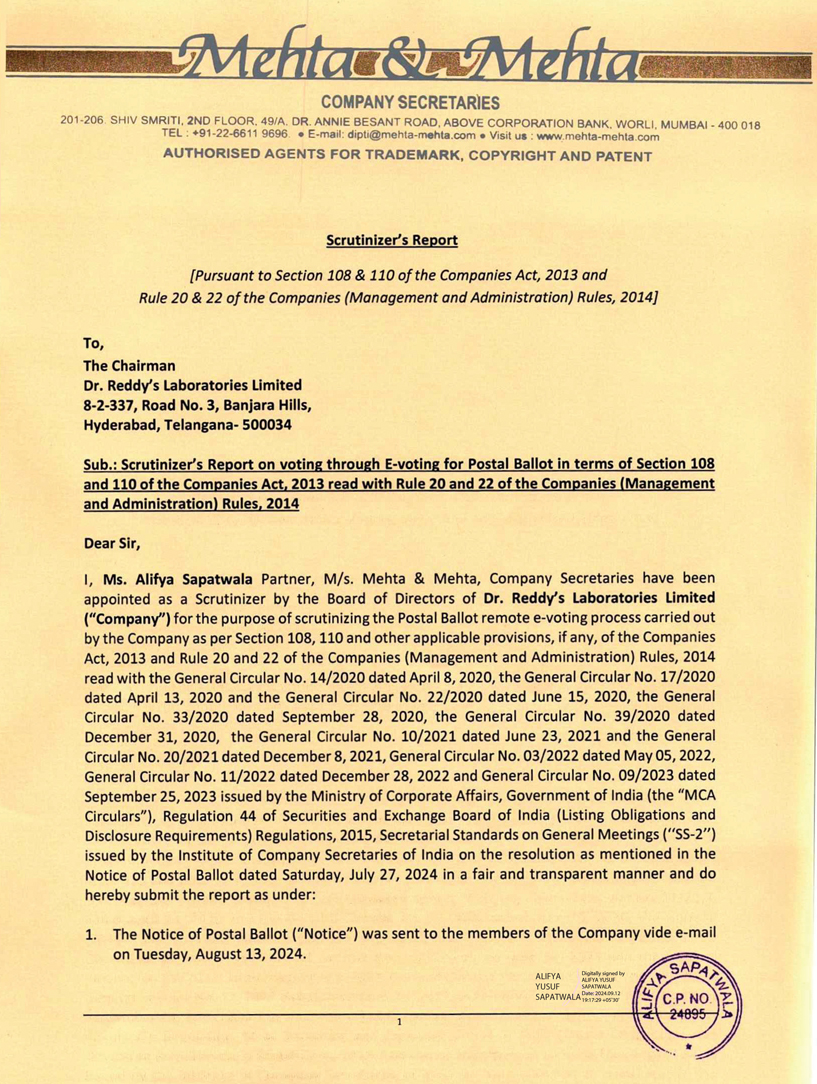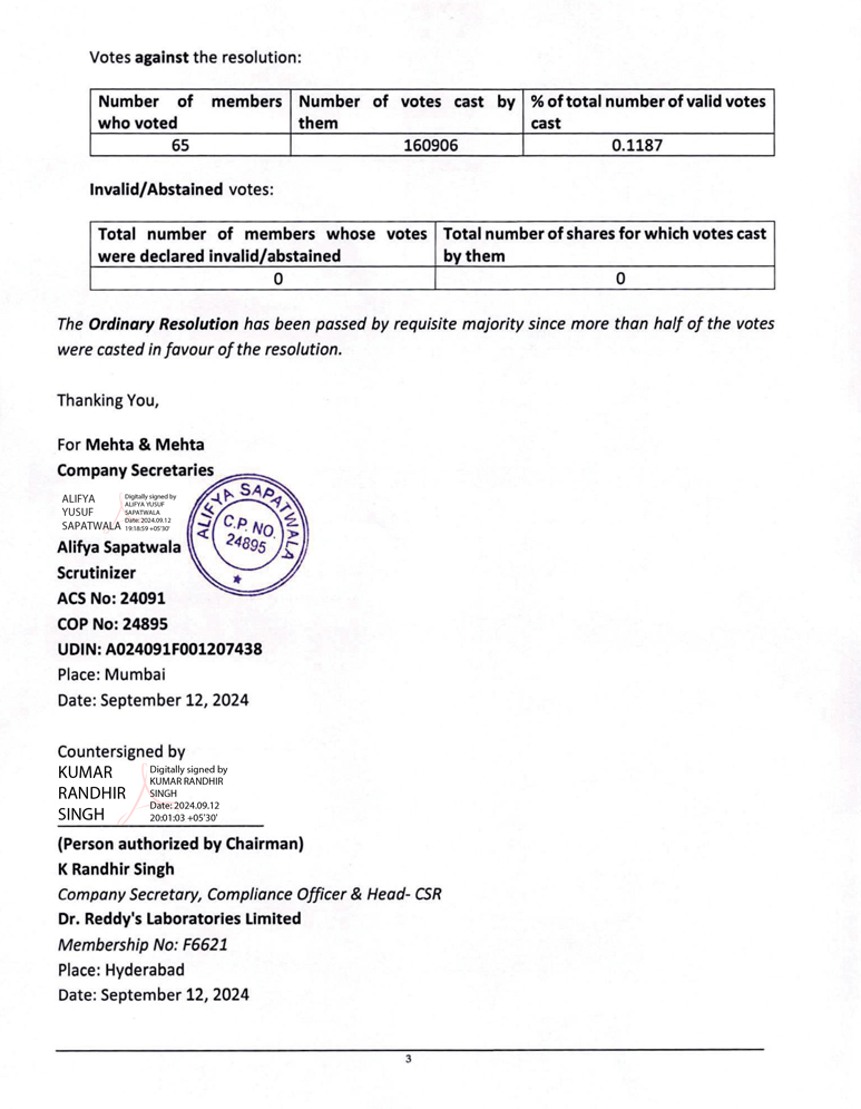 DR. REDDY’S LABORATORIES LIMITED (Registrant) | |||