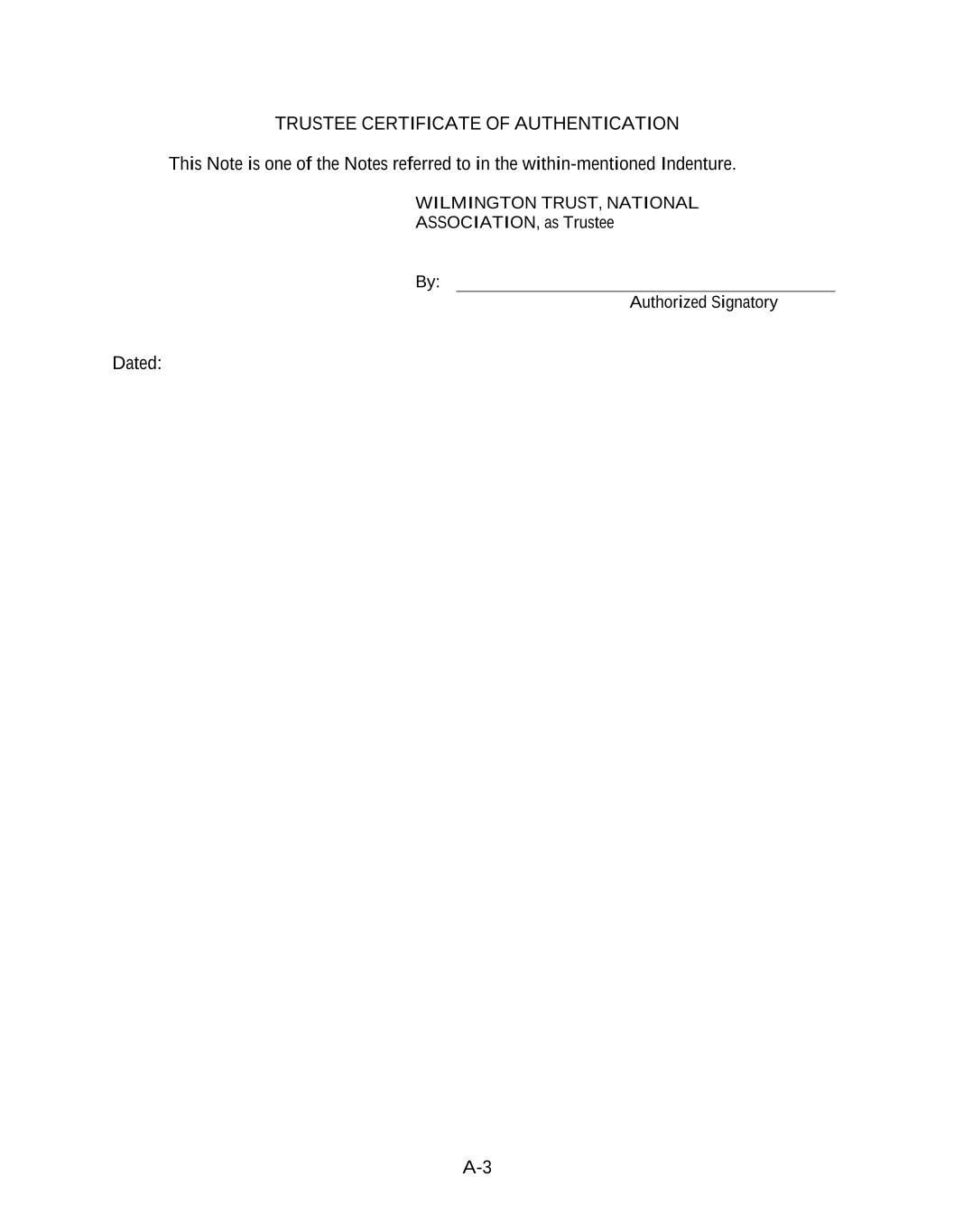 A-3 TRUSTEE CERTIFICATE OF AUTHENTICATION This Note is one of the Notes referred to in the within-mentioned Indenture. WILMINGTON TRUST, NATIONAL ASSOCIATION, as Trustee By: Authorized Signatory Dated: