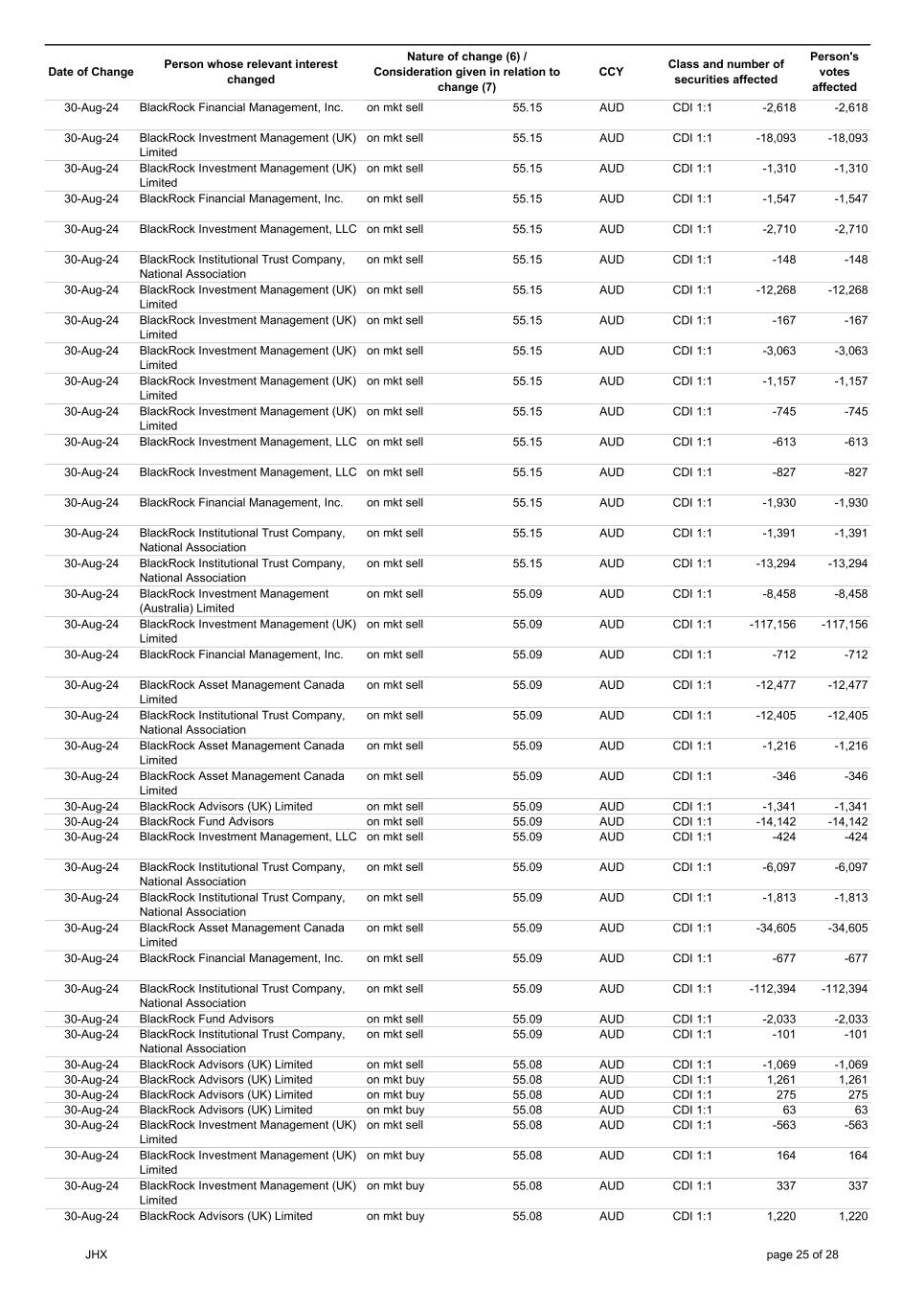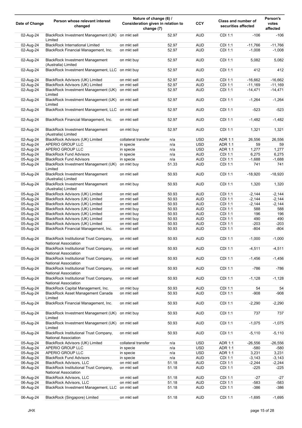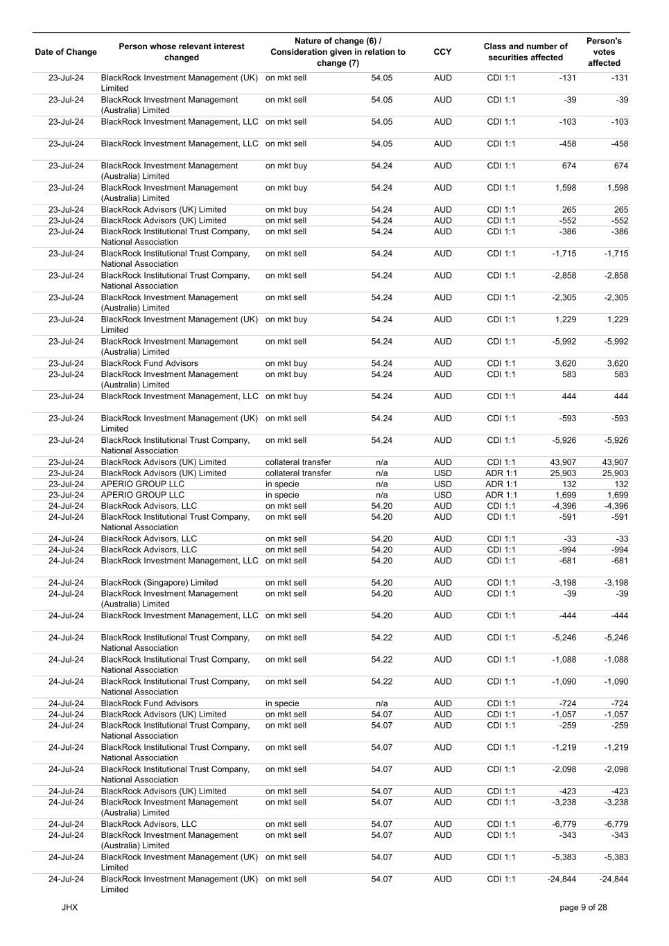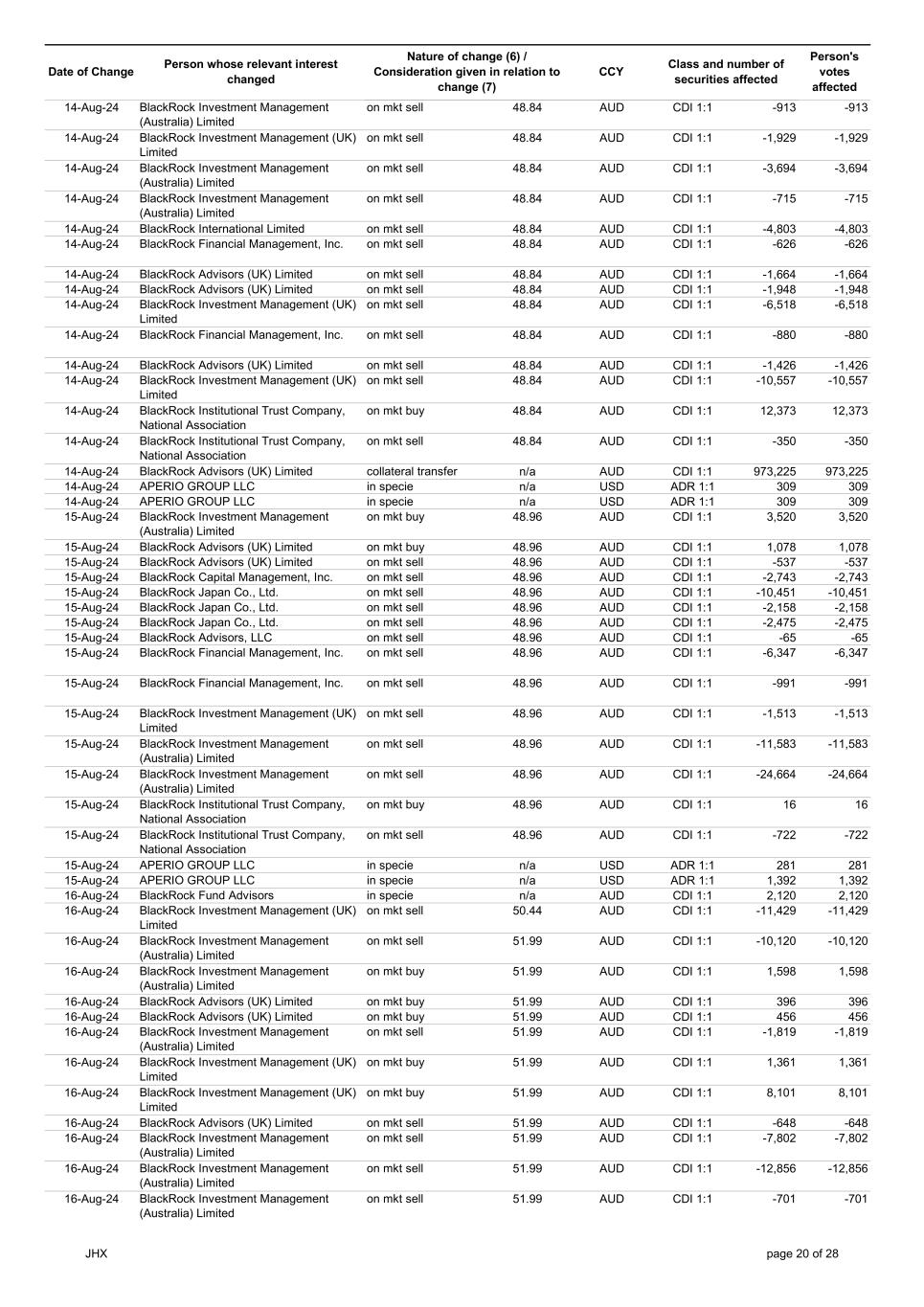| | Update - Notification of buy-back - JHX |