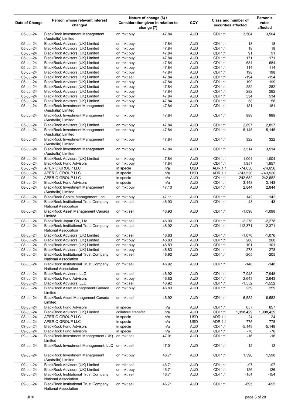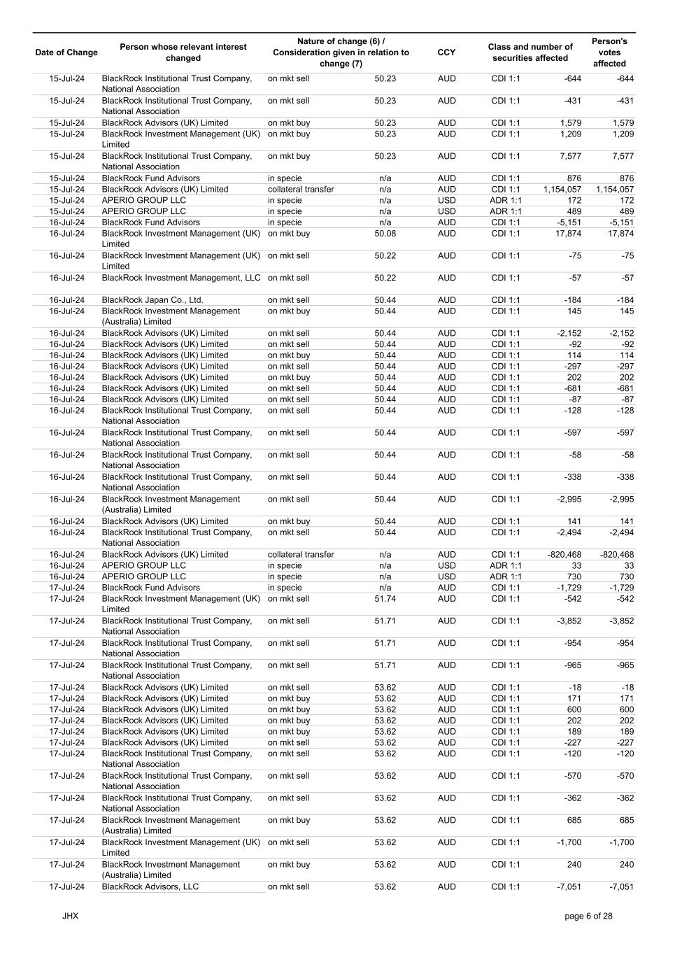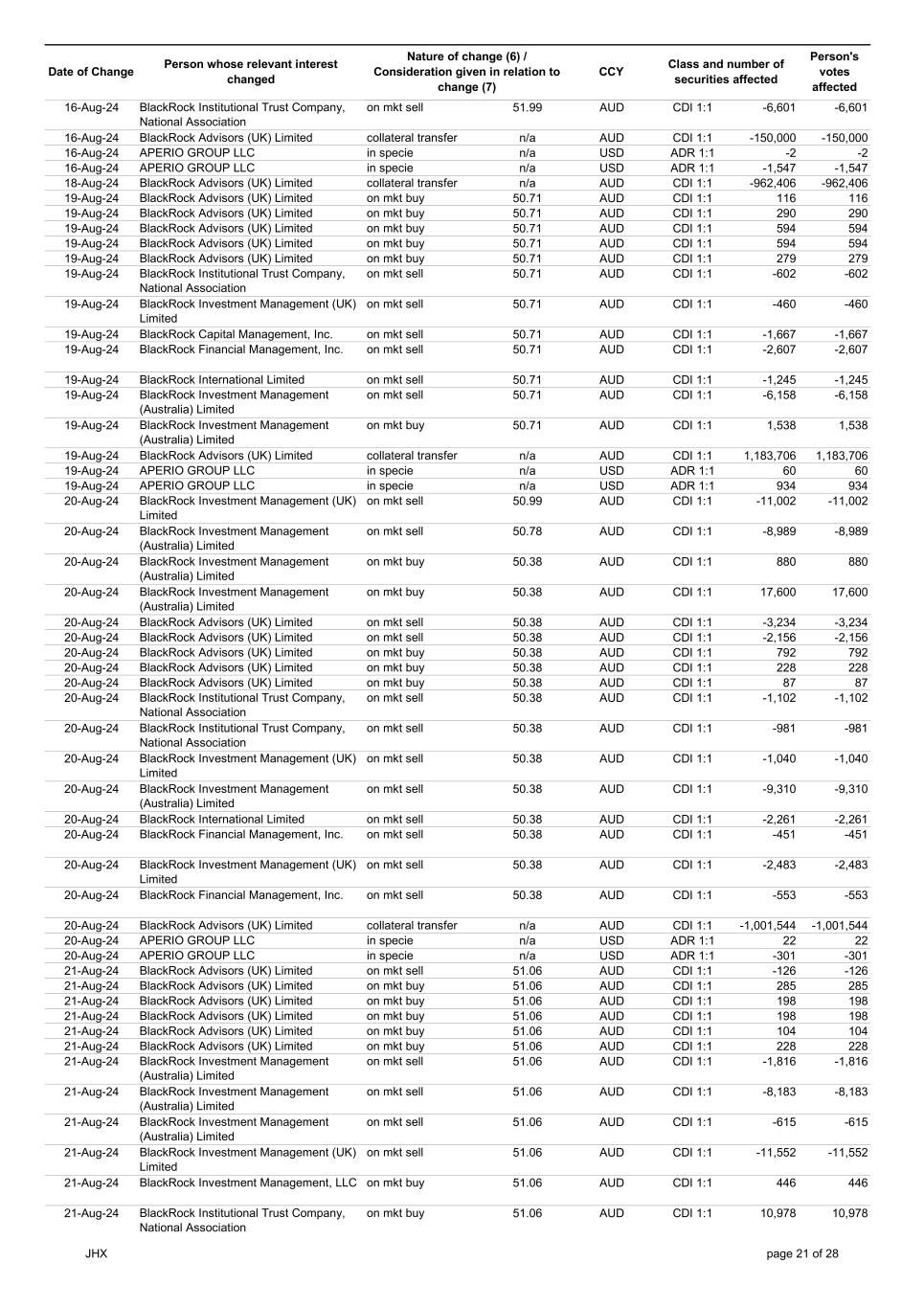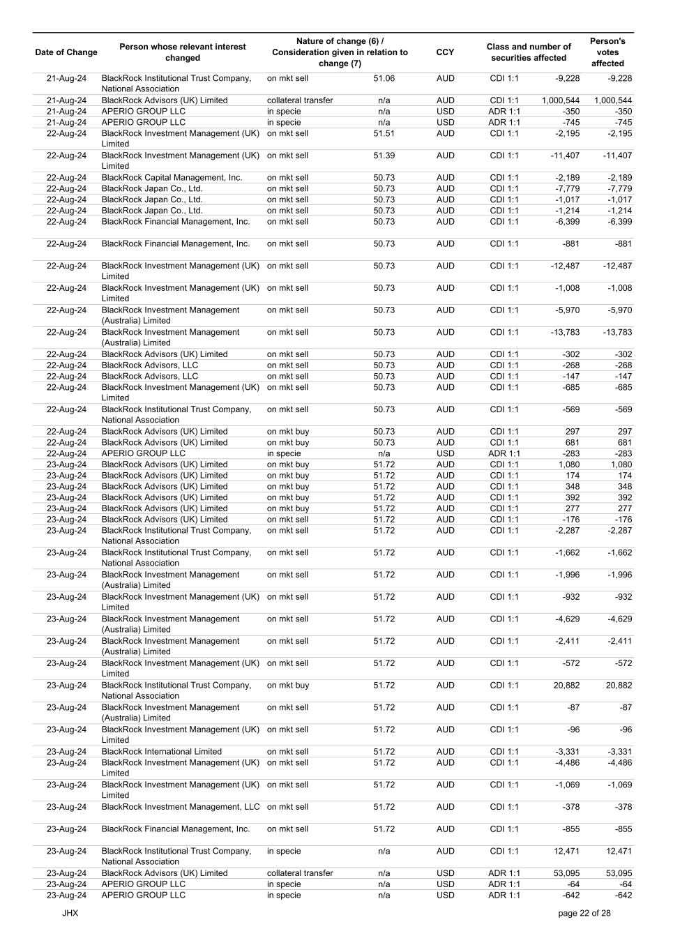 | | Update - Notification of buy-back - JHX |
