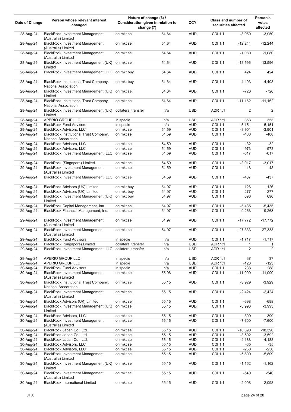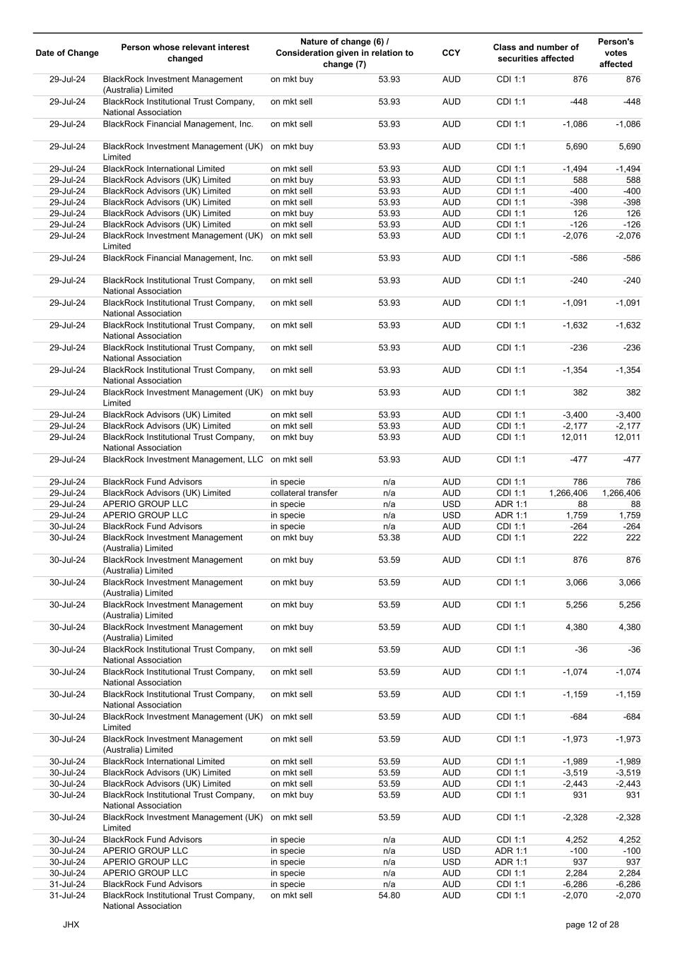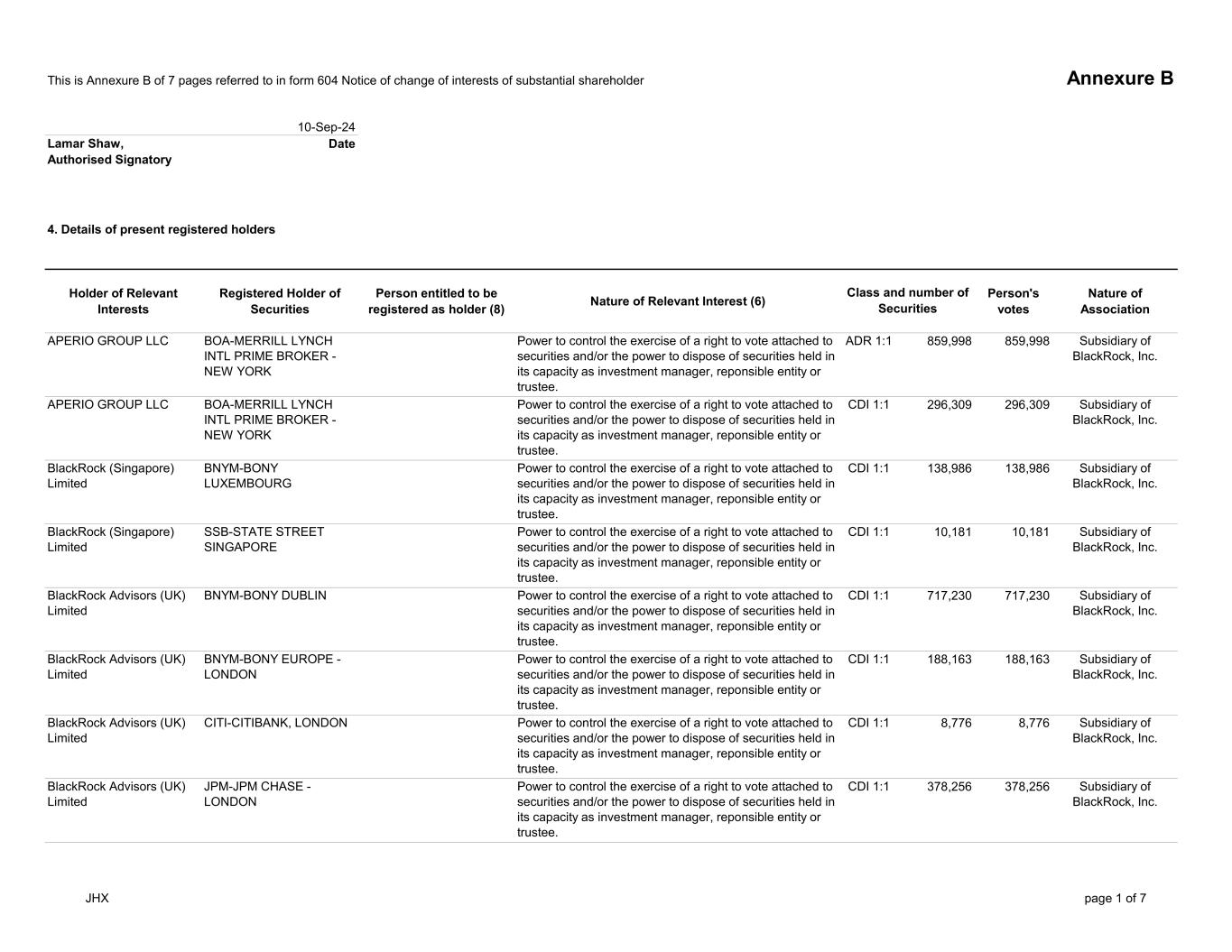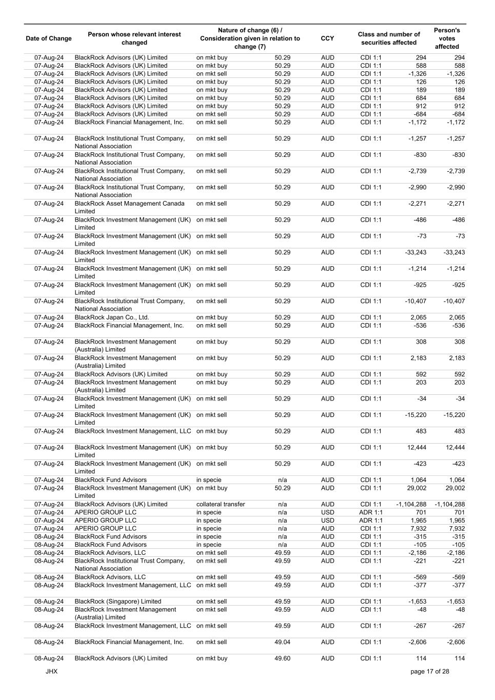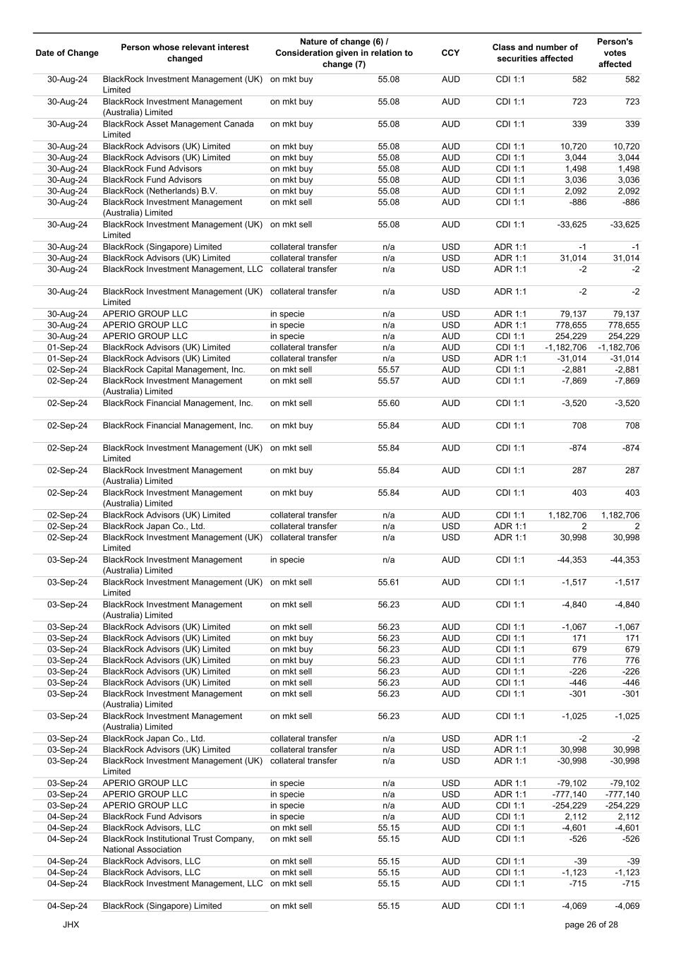 | | Update - Notification of buy-back - JHX |