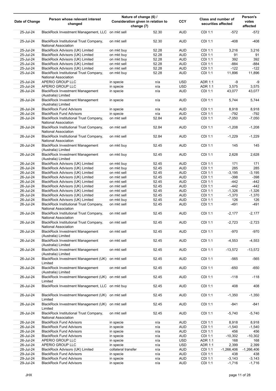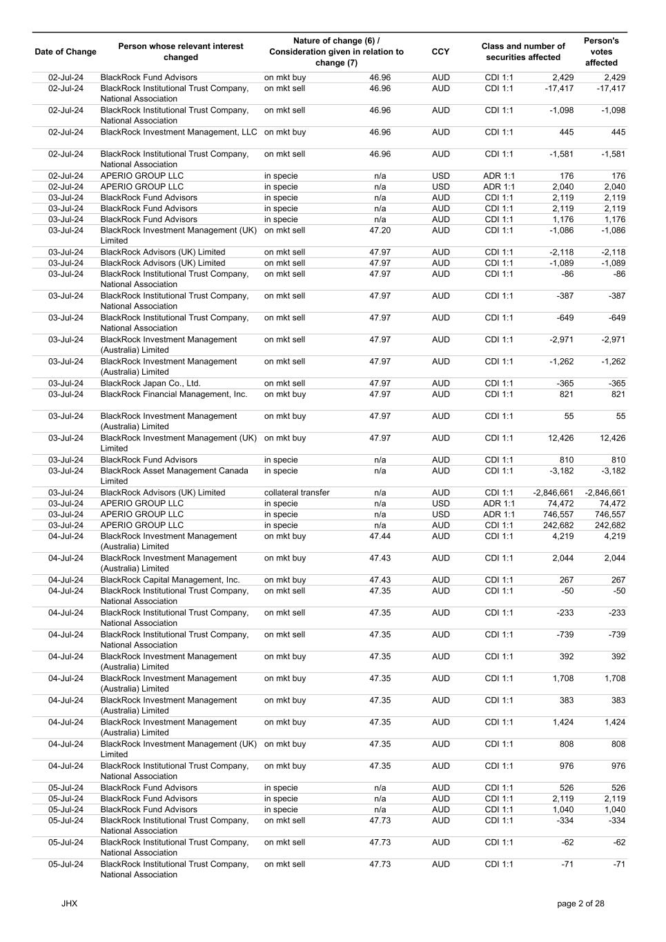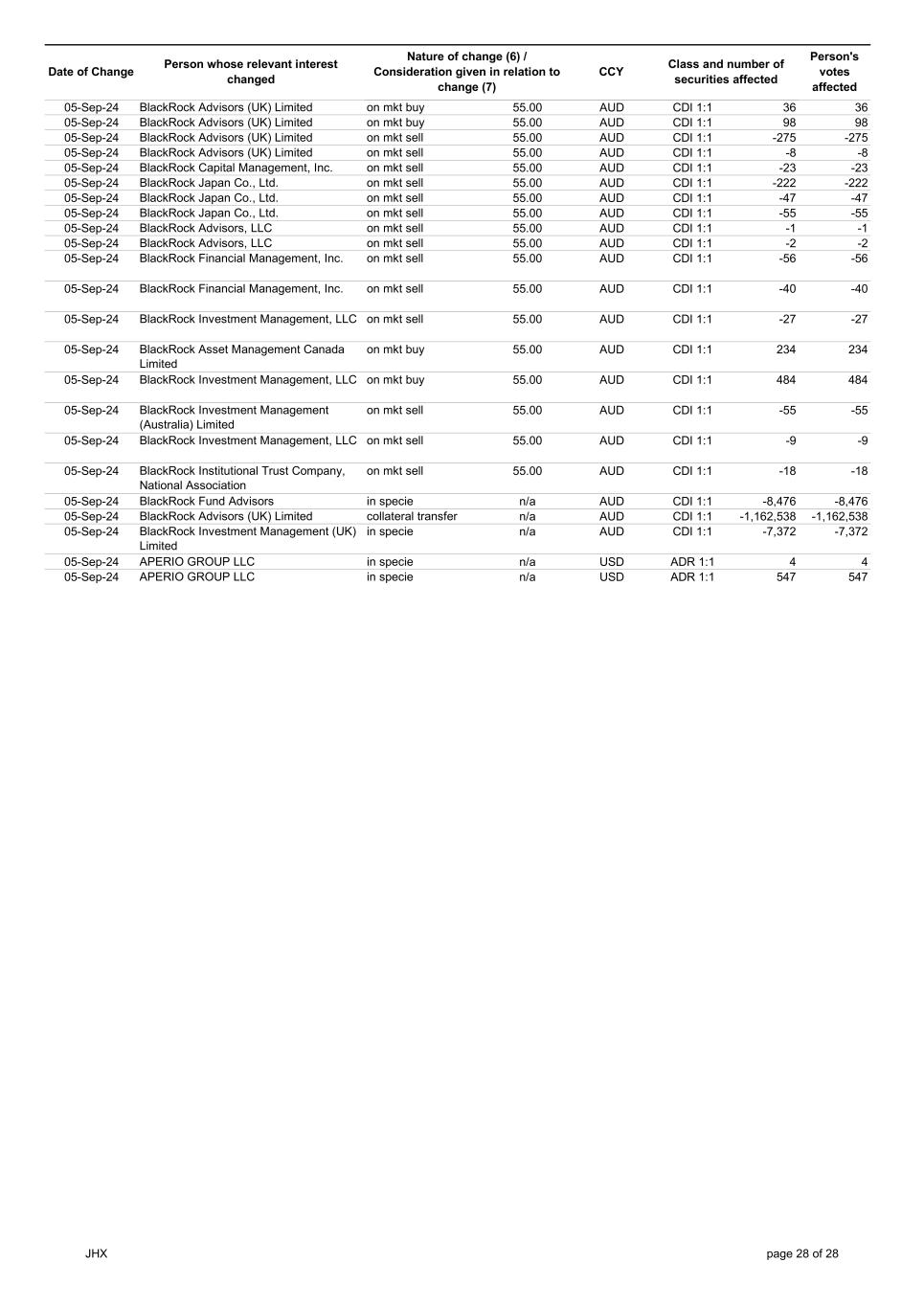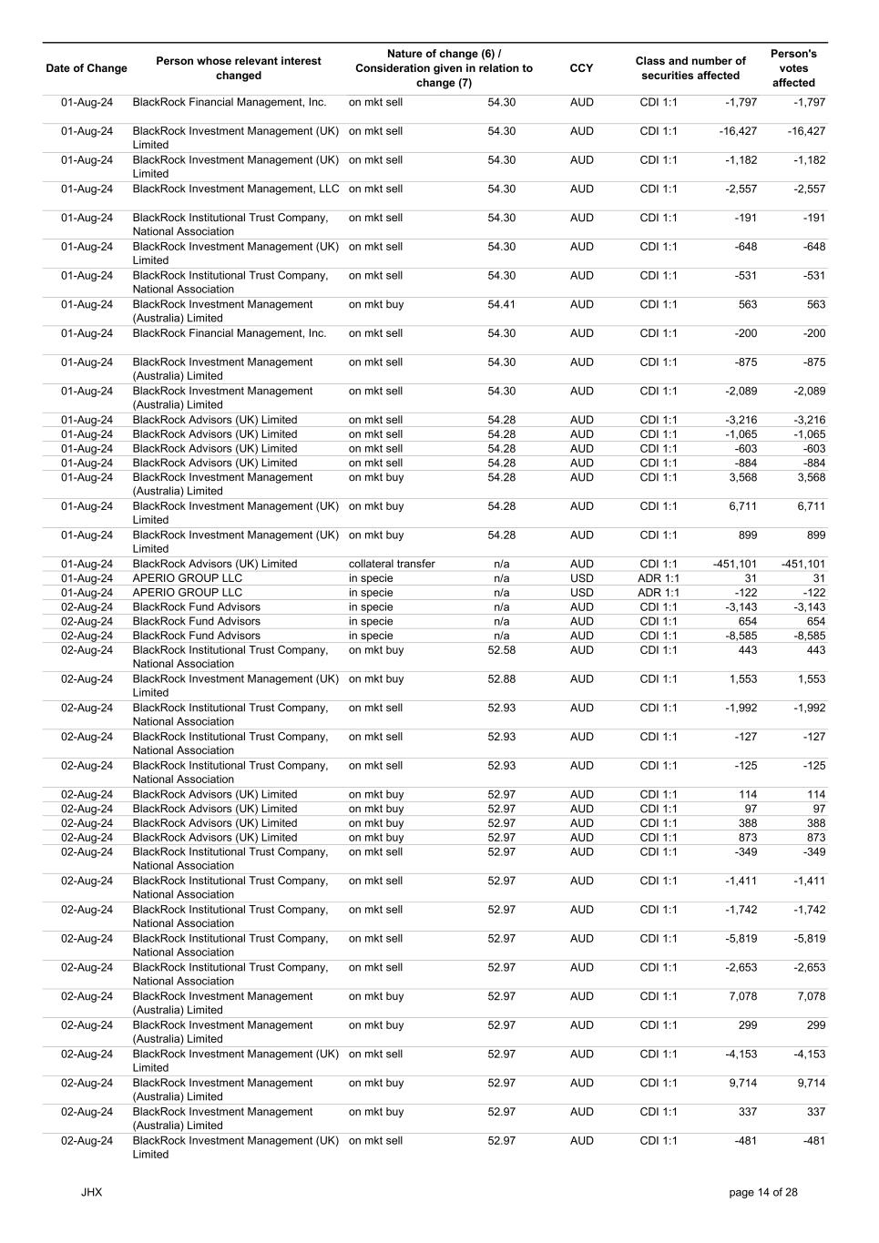 | | Update - Notification of buy-back - JHX |