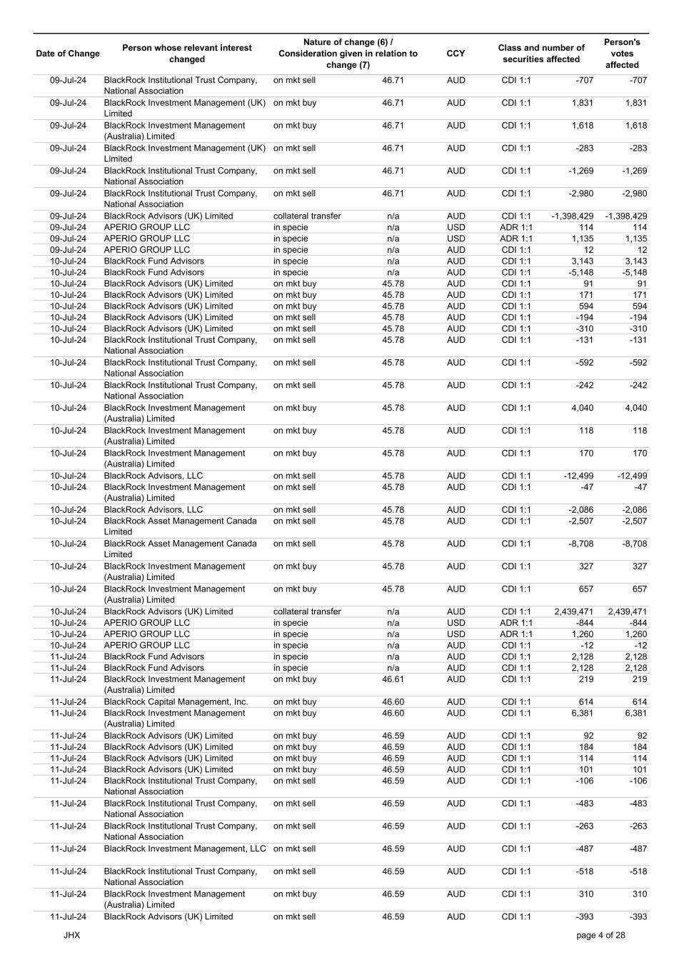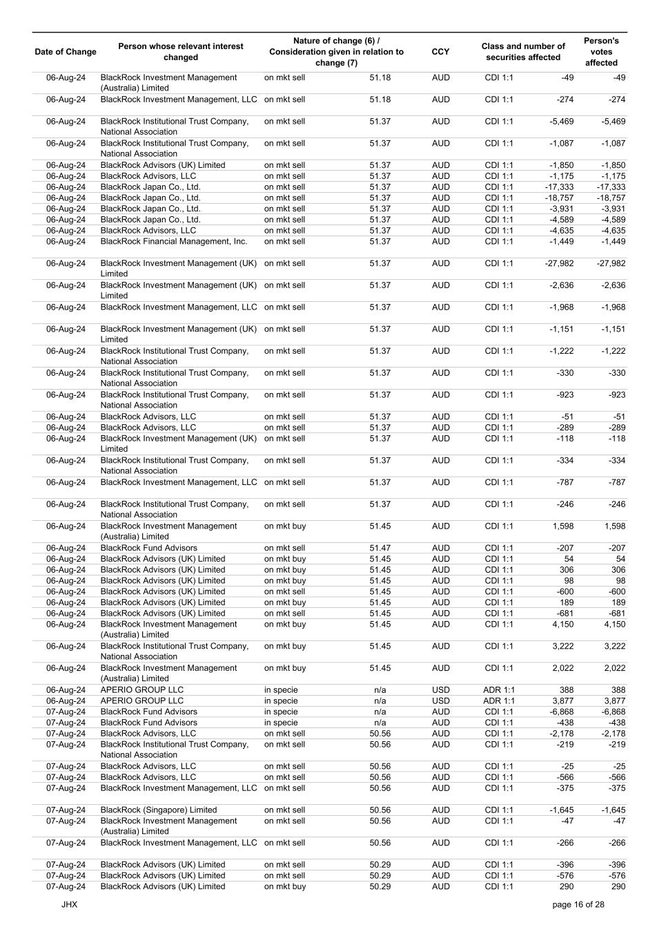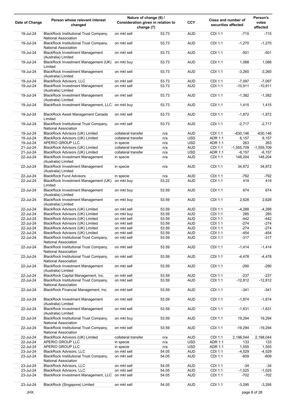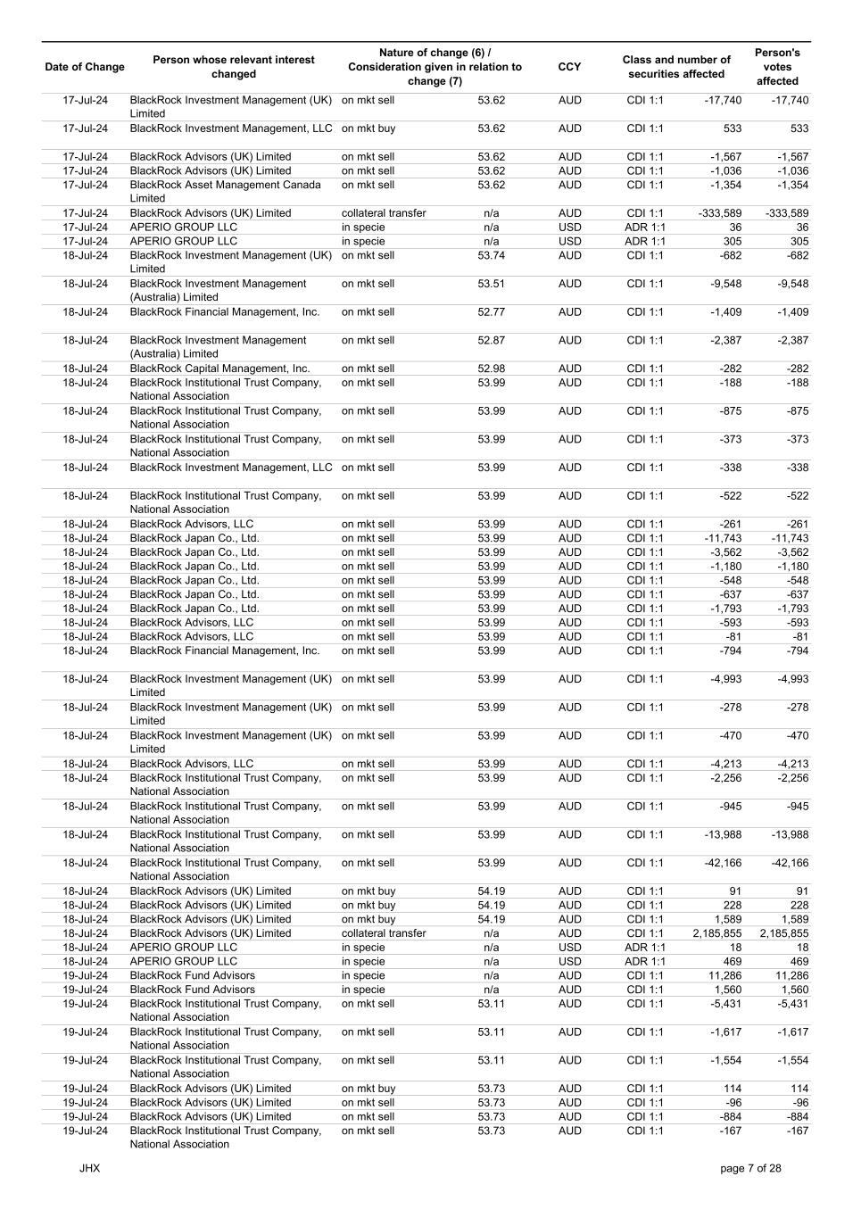 | | Update - Notification of buy-back - JHX |
