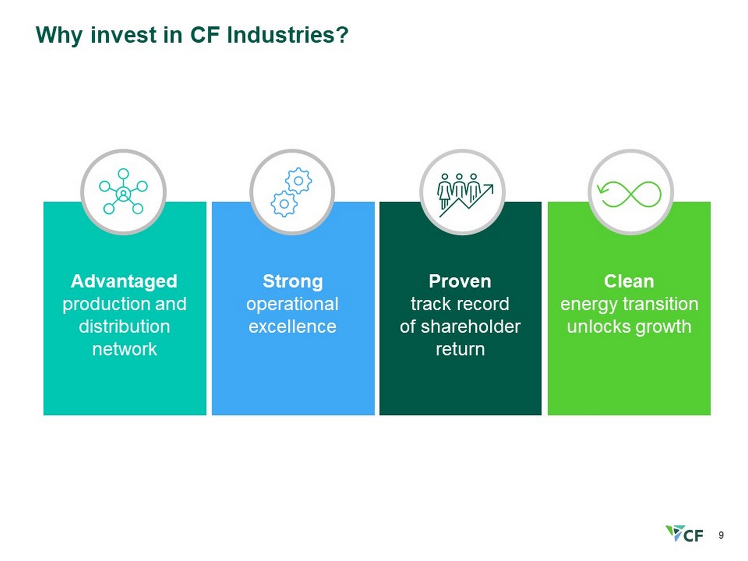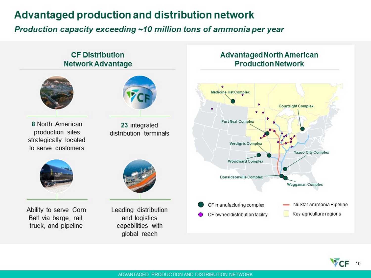 9 Advantaged production and distribution network Strong operational excellence Proven track record of shareholder return Clean energy transition unlocks growth Why invest in CF Industries?