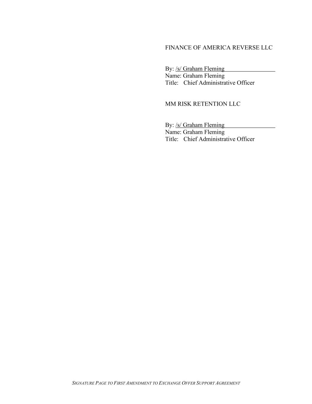 SIGNATURE PAGE TO FIRST AMENDMENT TO EXCHANGE OFFER SUPPORT AGREEMENT FINANCE OF AMERICA REVERSE LLC By: /s/ Graham Fleming Name: Graham Fleming Title: Chief Administrative Officer MM RISK RETENTION LLC By: /s/ Graham Fleming Name: Graham Fleming Title: Chief Administrative Officer