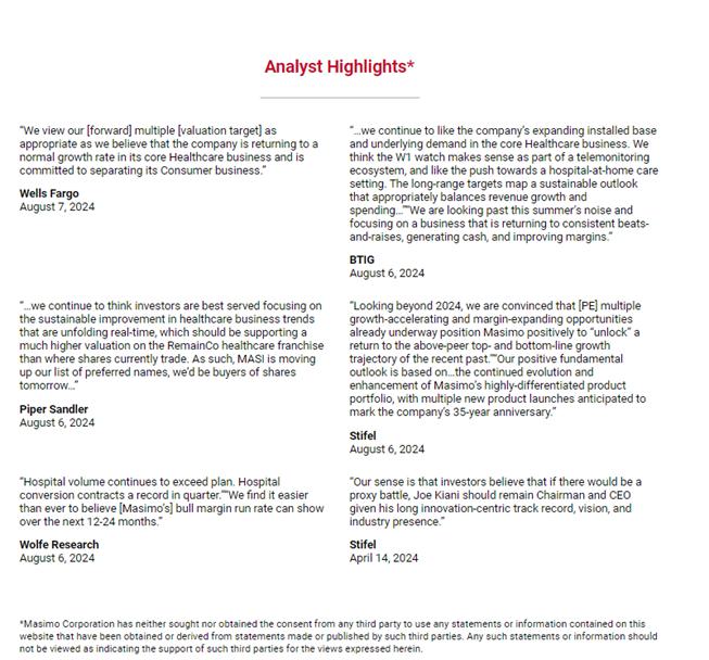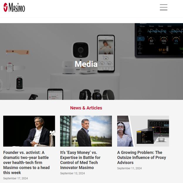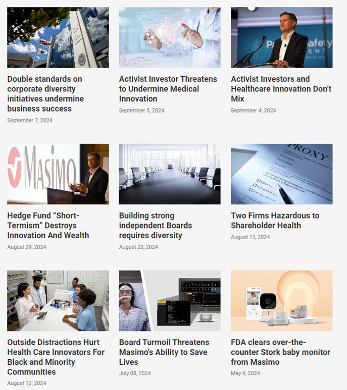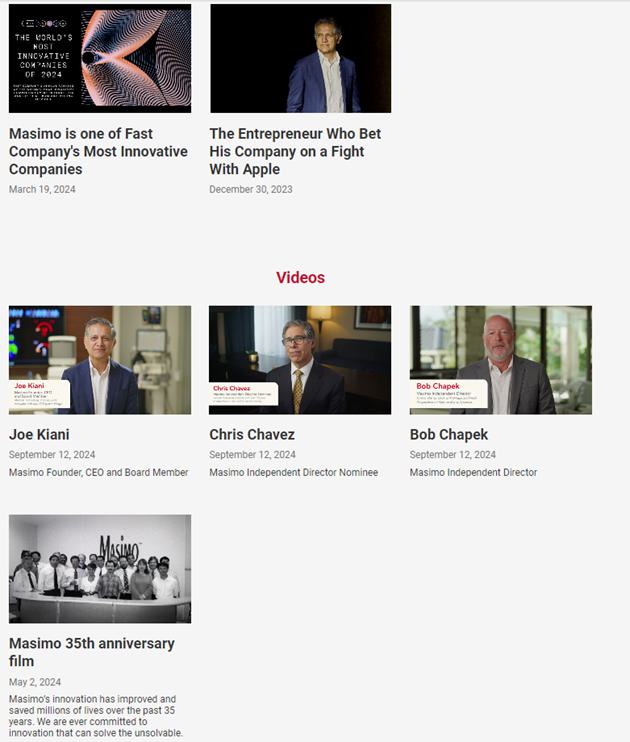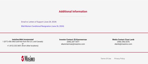 On September 17, 2024, Masimo made updates to its website, www.ProtectMasimosFuture.com, in connection with the Annual Meeting. A copy of the updated website content (other than content previously filed) can be found below.