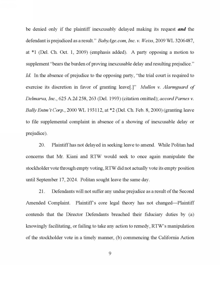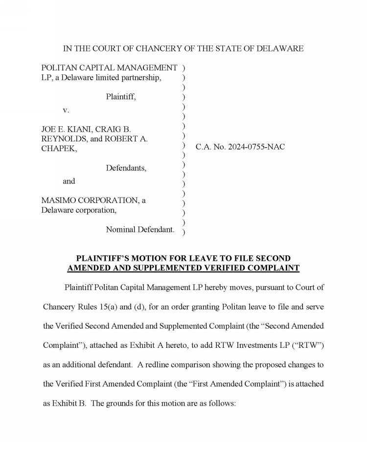 Additionally, on September 17, 2024, Politan filed the following Motion To Leave to File a Second Amended and Supplemented Verified Complaint: