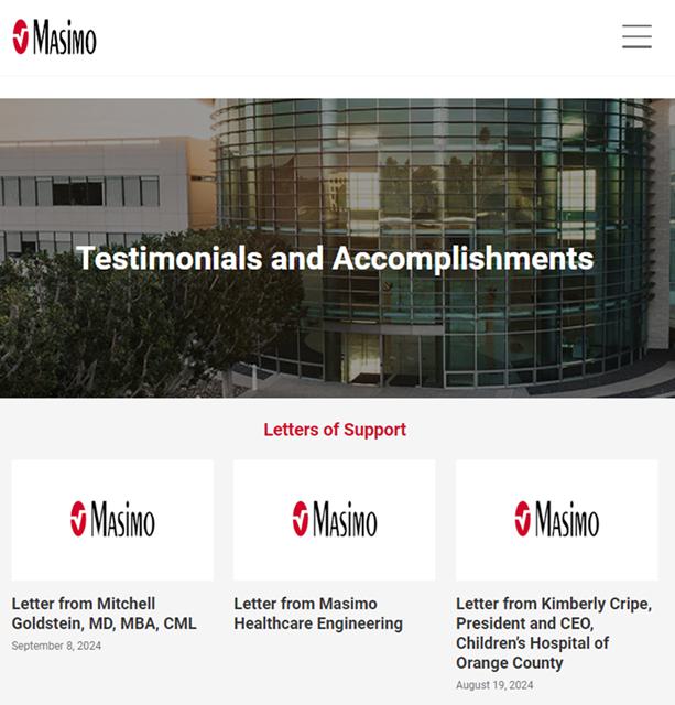 On September 17, 2024, Masimo Corporation (“Masimo” or the “Company”) made updates to its website, www.ProtectMasimosFuture.com, in connection with the 2024 Annual Meeting of Stockholders. A copy of the updated website content (other than content previously filed) can be found below.
