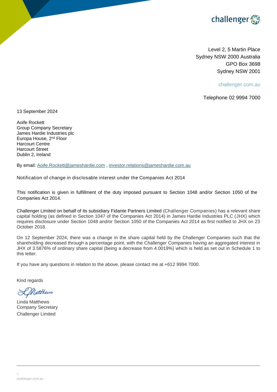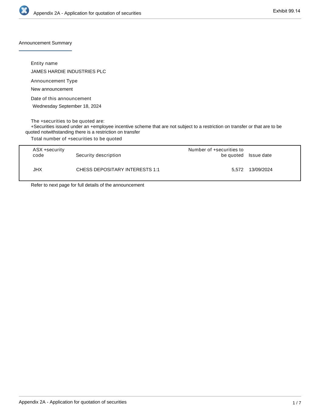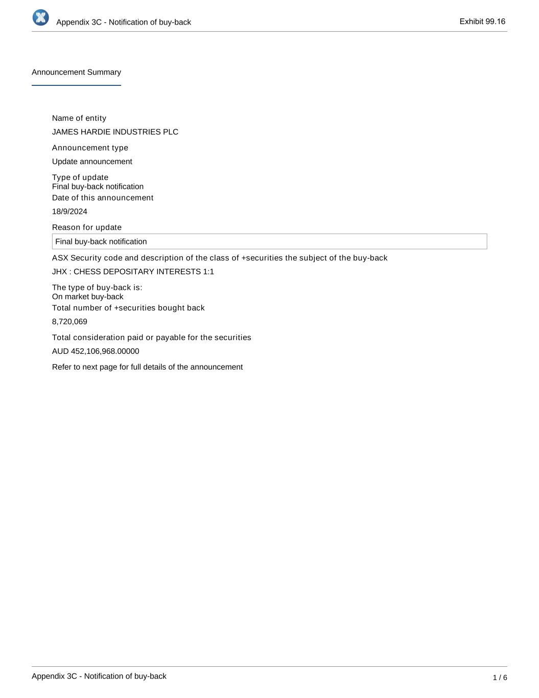 Forward-looking statements are based on the Company’s current expectations, estimates and assumptions and because forward-looking statements address future results, events and conditions, they, by their very nature, involve inherent risks and uncertainties, many of which are unforeseeable and beyond the Company’s control. Such known and unknown risks, uncertainties and other factors may cause actual results, performance or other achievements to differ materially from the anticipated results, performance or achievements expressed, projected or implied by these forward-looking statements. These factors, some of which are discussed under “Risk Factors” in Section 3 of the Form 20-F filed with the Securities and Exchange Commission on 20 May 2024, include, but are not limited to: all matters relating to or arising out of the prior manufacture of products that contained asbestos by current and former Company subsidiaries; required contributions to AICF, any shortfall in AICF funding and the effect of currency exchange rate movements on the amount recorded in the Company’s financial statements as an asbestos liability; compliance with and changes in tax laws and treatments; competition and product pricing in the markets in which the Company operates; the consequences of product failures or defects; exposure to environmental, asbestos, putative consumer class action or other legal proceedings; general economic and market conditions; the supply and cost of raw materials; possible increases in competition and the potential that competitors could copy the Company’s products; compliance with and changes in environmental and health and safety laws; risks of conducting business internationally; compliance with and changes in laws and regulations; currency exchange risks; dependence on customer preference and the concentration of the Company’s customer base; dependence on residential and commercial construction markets; the effect of adverse changes in climate or weather patterns; use of accounting estimates; and all other risks identified in the Company’s reports filed with Australian, Irish and US securities regulatory agencies and exchanges (as appropriate). The Company cautions you that the foregoing list of factors is not exhaustive and that other risks and uncertainties may cause actual results to differ materially from those referenced in the Company’s forward-looking statements. Forward-looking statements speak only as of the date they are made and are statements of the Company’s current expectations concerning future results, events and conditions. The Company assumes no obligation to update any forward-looking statements or information except as required by law.
