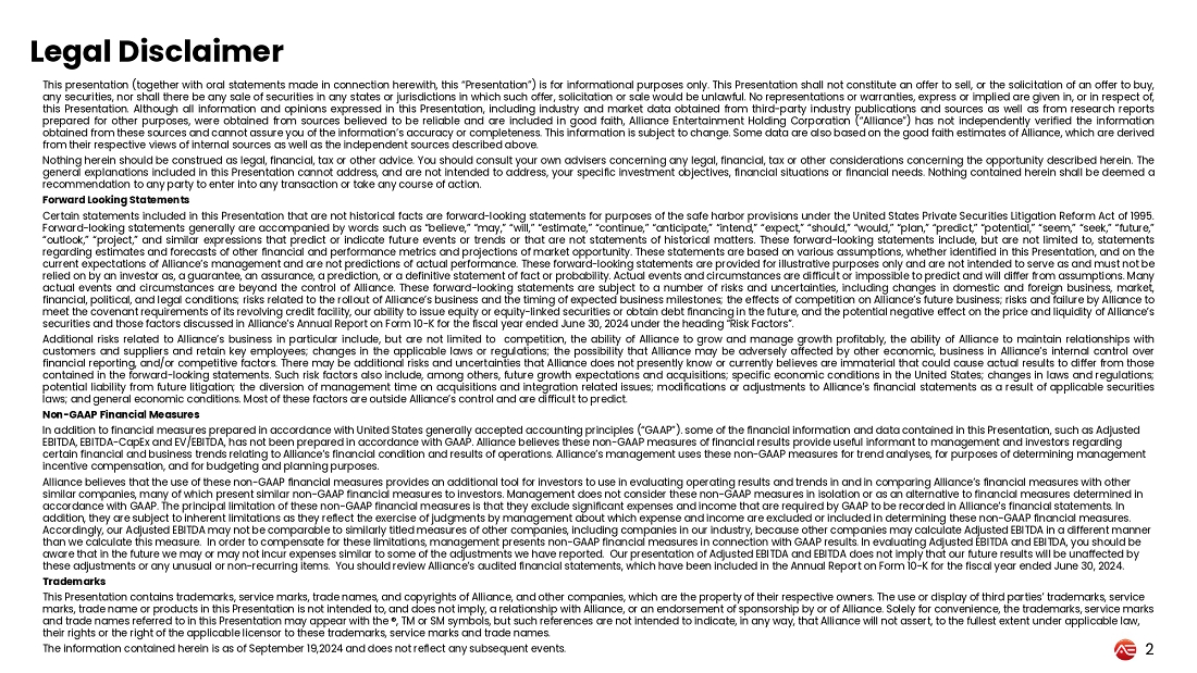 This Current Report on Form 8-K includes certain statements that are not historical facts but are forward-looking statements for purposes of the safe harbor provisions under the United States Private Securities Litigation Reform Act of 1995. These statements are based on various assumptions, whether or not identified in this Current Report on Form 8-K, and on the current expectations of the Company’s management and are not predictions of actual performance. Actual events and circumstances are difficult or impossible to predict and will differ from assumptions. These forward-looking statements are subject to a number of risks and uncertainties, including those factors discussed in the Company’s Annual Report on Form 10-K filed with the Securities and Exchange Commission (“SEC”) on September 19, 2024 under the heading “Risk Factors,” the Company’s Registration Statement on Form S-1 filed with the SEC on April 10, 2023 under the heading “Risk Factors,” and other documents of the Company filed, or to be filed, with the SEC, which are accessible through the Investor Relations section of the Company’s website at ir.aent.com. If the risks materialize or assumptions prove incorrect, actual results could differ materially from the results implied by these forward-looking statements. The Company disclaims any obligation to update any forward-looking statements.