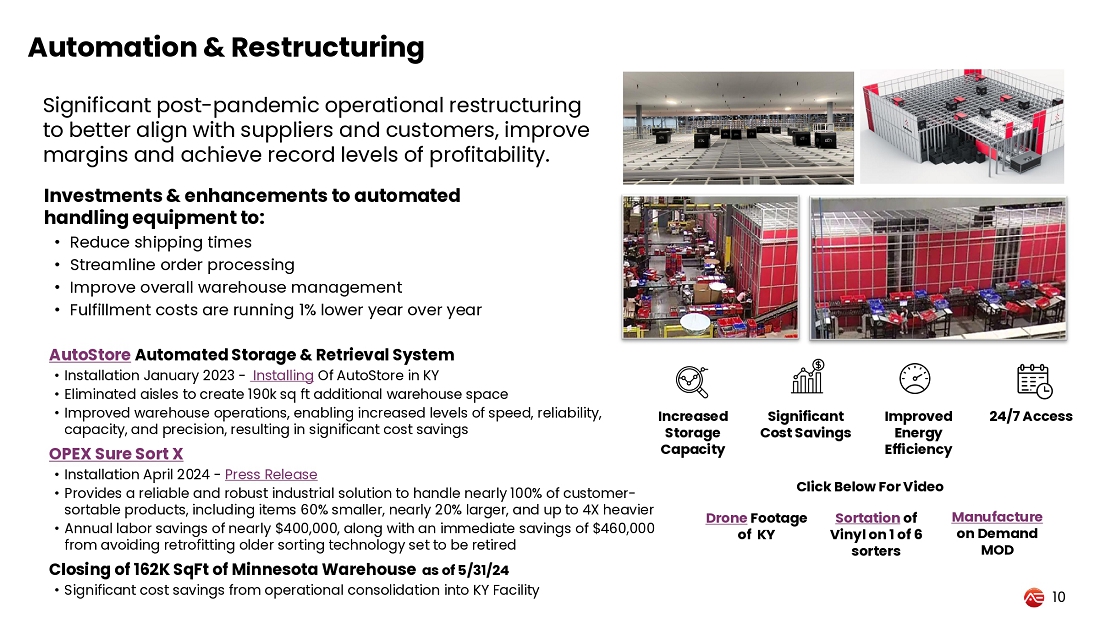 | ● | Hosted first Investor and Analyst Tour at Shepherdsville, Kentucky warehouse in May 2024. |