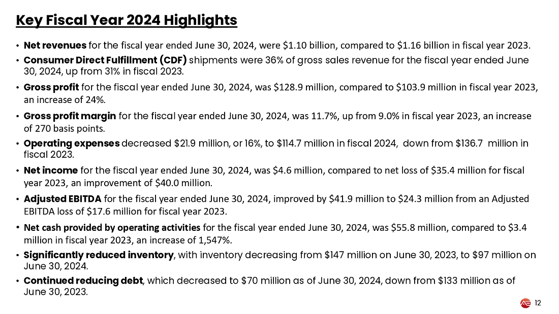 | ● | Net income was $4.6 million in fiscal year 2024, a $40 million improvement from the net loss of $35.4 million in the prior year. | |