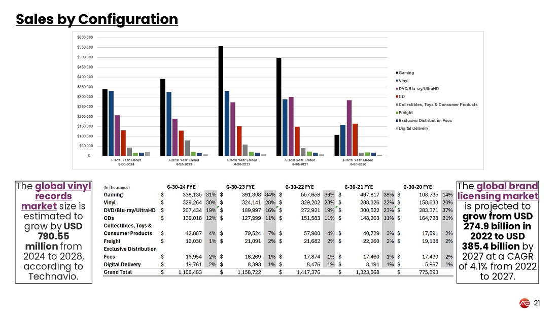 Bruce Ogilvie, Chairman of Alliance Entertainment, commented, “We made substantial progress in strengthening our business during fiscal 2024, and I am proud of the strategic actions we took to position Alliance Entertainment for long-term growth and profitability. Our exclusive distribution rights and broad content portfolio have allowed us to maintain resilient demand in key areas, such as physical music and movies, where we’ve seen growth in vinyl, CDs, and home video products.”