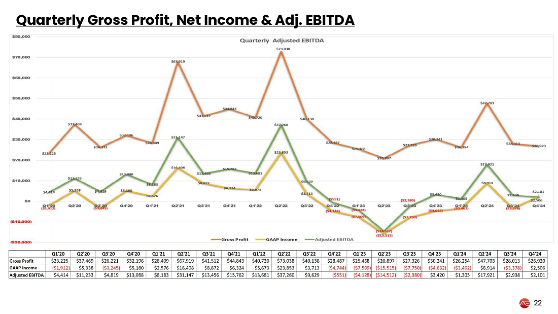 Non-GAAP Financial Measures: We define Adjusted EBITDA as net income or loss adjusted to exclude: (i) income tax expense; (ii) other income (loss); (iii) interest expense; and (iv) depreciation and amortization expense and (v) other infrequent, non- recurring expenses. Our method of calculating Adjusted EBITDA may differ from other issuers and accordingly, this measure may not be comparable to measures used by other issuers. We use Adjusted EBITDA to evaluate our own operating performance and as an integral part of our planning process. We present Adjusted EBITDA as a supplemental measure because we believe such a measure is useful to investors as a reasonable indicator of operating performance. We believe this measure is a financial metric used by many investors to compare companies. This measure is not a recognized measure of financial performance under GAAP in the United States and should not be considered as a substitute for operating earnings (losses), net earnings (loss) from continuing operations or cash flows from operating activities, as determined in accordance with GAAP. See the table below for a reconciliation, for the periods presented, of our GAAP net income (loss) to Adjusted EBITDA.