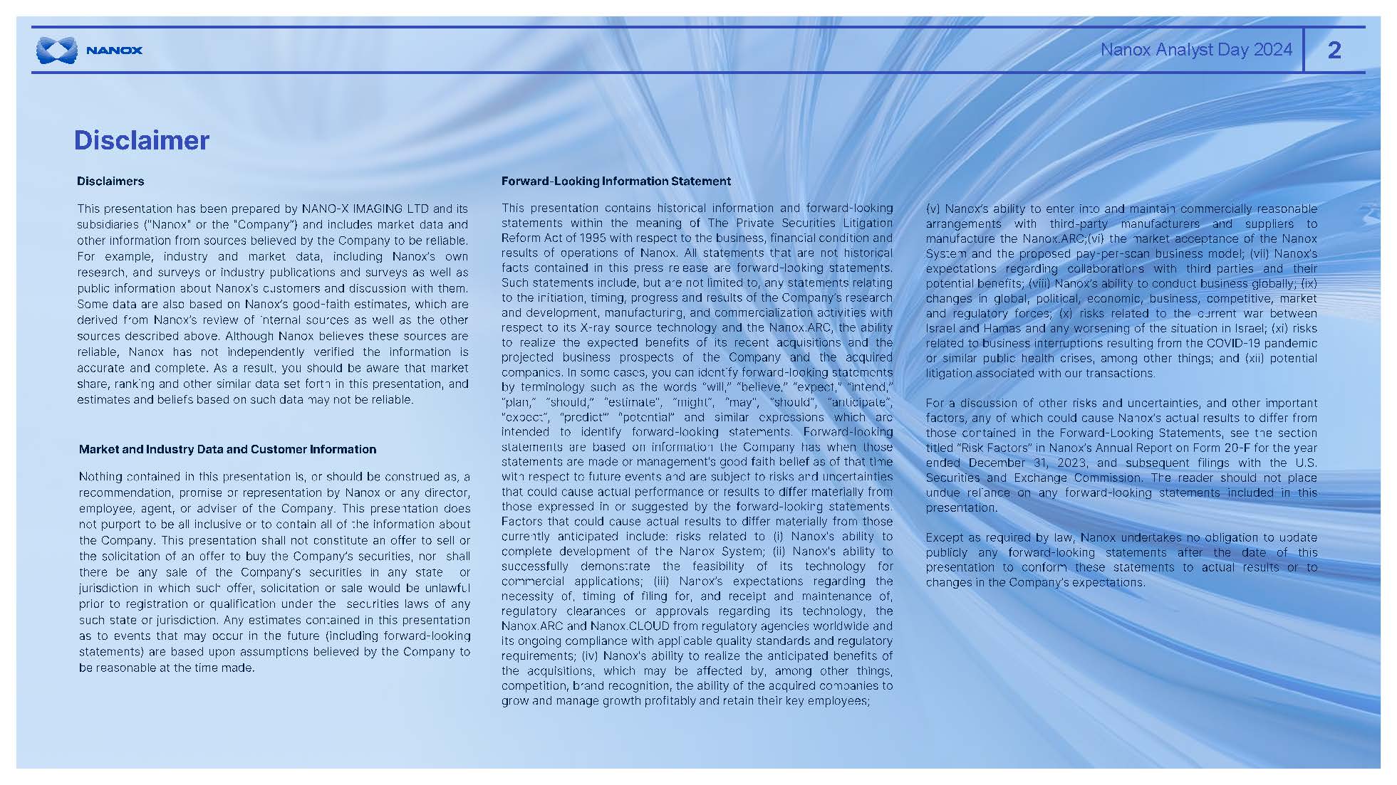 On Friday 20, 2024, Nano-X Imaging Ltd. (the “Company”) held an Analyst Day, during which the Company presented recent commercial, clinical and regulatory pathways, and provided a glance to its future products which are in development stages and are not yet regulatory cleared. A copy of the presentation, excluding a VR demo, is attached hereto as Exhibit 99.1 and incorporated herein by reference.