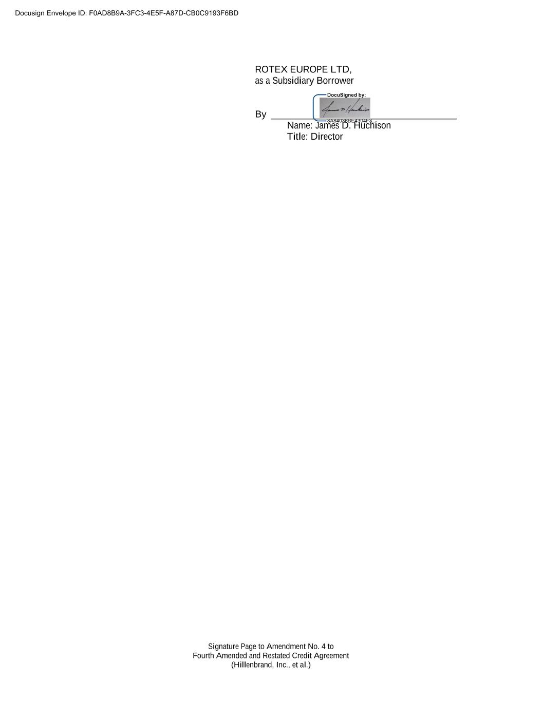 Signature Page to Amendment No. 4 to Fourth Amended and Restated Credit Agreement (Hillenbrand, Inc., et al.) ROTEX EUROPE LTD, as a Subsidiary Borrower By ______________________________________ Name: James D. Huchison Title: Director
