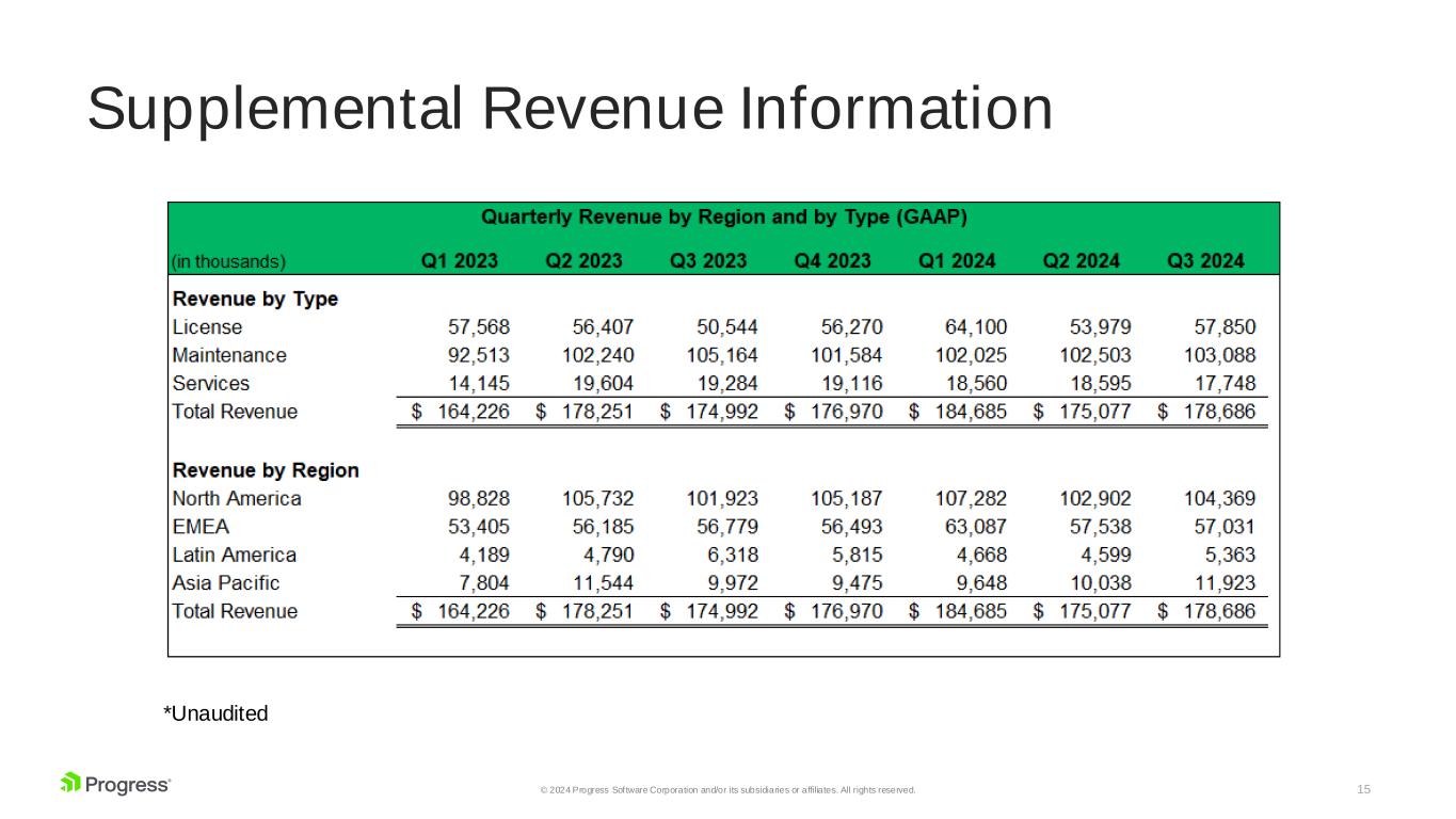 15© 2024 Progress Software Corporation and/or its subsidiaries or affiliates. All rights reserved. Supplemental Revenue Information *Unaudited