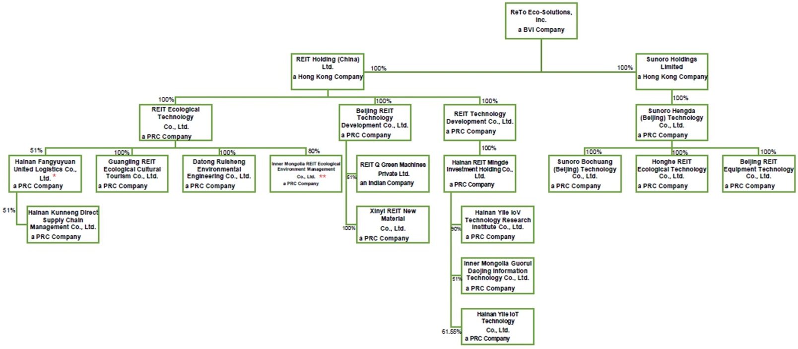 ReTo is a business company incorporated in the British Virgin Islands (“BVI”). As a holding company with no material operations of its own, ReTo conducts substantially all of its operations through its subsidiaries established in the People’s Republic of China (the “PRC” or “China”). Investors in the Class A Shares should be aware that they may never directly hold equity interests in the Chinese operating entities, but rather purchasing equity solely in ReTo, our BVI holding company, which does not directly own substantially all of our business in China conducted by our subsidiaries. Class A Shares registered under this Registration Statement are shares of our BVI holding company instead of shares of our subsidiaries in China. When used herein, the references to laws and regulations of “China” or the “PRC” are only to such laws and regulations of mainland China, excluding, for the purpose of this prospectus only, Taiwan, Hong Kong and Macau.