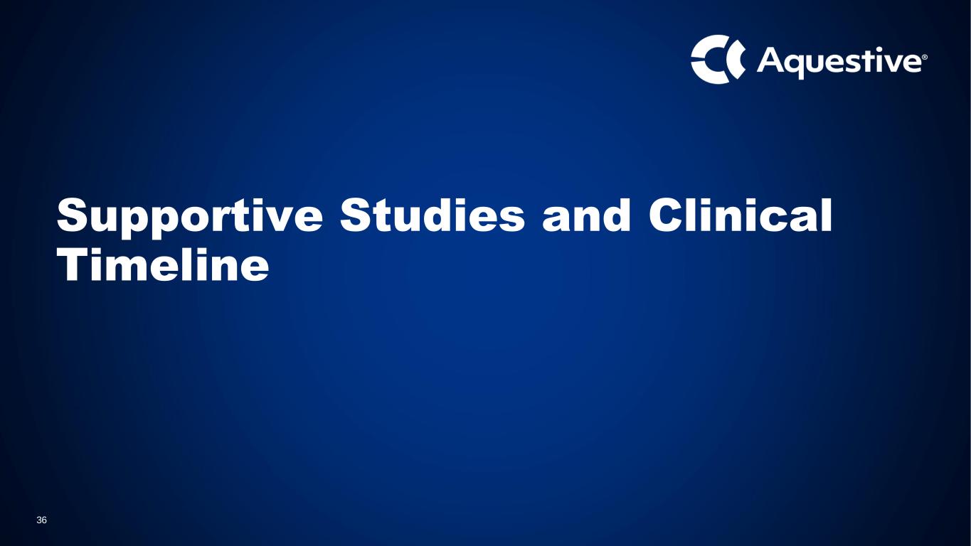 Late-stage pipeline assets of competitors include multiple JAK inhibitor products, creating a unique space for AQST-108, if approved by FDA Alopecia areata competitive pipeline1 Route of Administration JAK Inhibitors Other Mechanism of Actions (MOAs) Phase 3 FiledPhase 2Phase 1 Daxdilimab Immune System Amgen AB-102 (Unspecified ROA) Unknown MOA Jupiter Wellness SHR0302 (China) JAK1 Reistone Biopharma Rinvoq JAK1 AbbVie Farudostat DHODH** ASLAN Pharmaceuticals Oral ARQ-255 JAK1 Arcutis Biotherapeutics Topical IMG-007 OX40 Inmagene Biopharmaceuticals EQ101 IL Pathway Equillium CB-SC-SCE Therapy Unknown MOA Throne Biotechnologies IV SQ ZB-168 IL-7 Receptor ZuraBio ADX-914 IL-7 Receptor Q32 Bio Monoclonal Antibody Small Molecule Cellular Molecule Type Peptide Protein 50 Rezpeg IL2 Receptor Nektar Amlitelimab OX40 Sanofi Key Issues with JAK inhibitors: • Safety: Black box warnings on label • Addressable Population: Only severe patients • Dosing: Twice daily (may impact compliance) 1. Aquestive Therapeutics data on file.