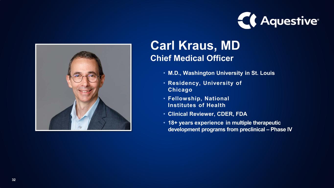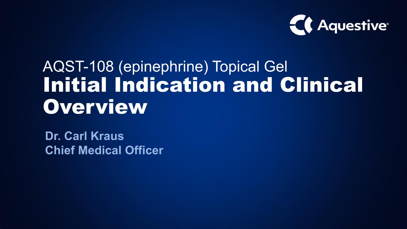 Dr. Carl Kraus Chief Medical Officer AQST-108 (epinephrine) Topical Gel Initial Indication and Clinical Overview