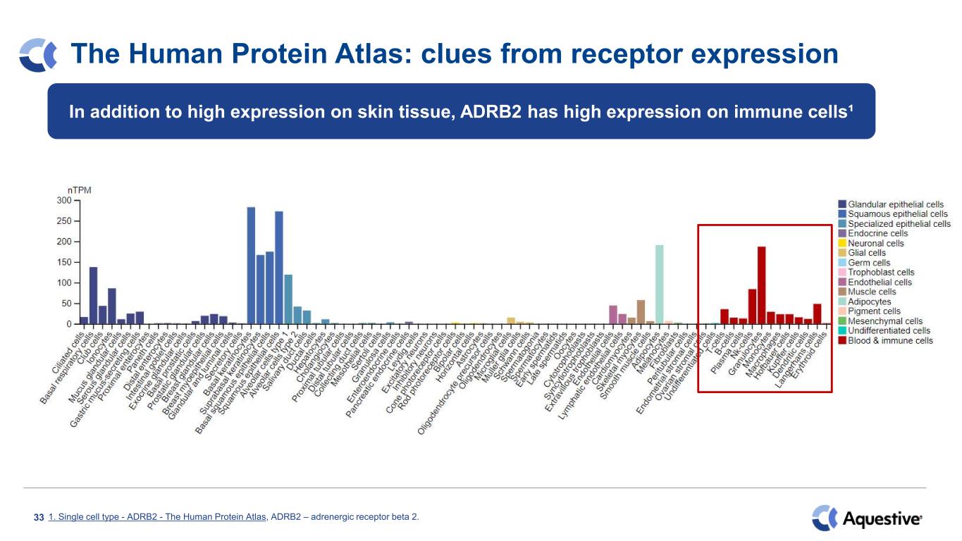 The Human Protein Atlas: clues from receptor expression 33 1. Single cell type - ADRB2 - The Human Protein Atlas, ADRB2 – adrenergic receptor beta 2. In addition to high expression on skin tissue, ADRB2 has high expression on immune cells¹