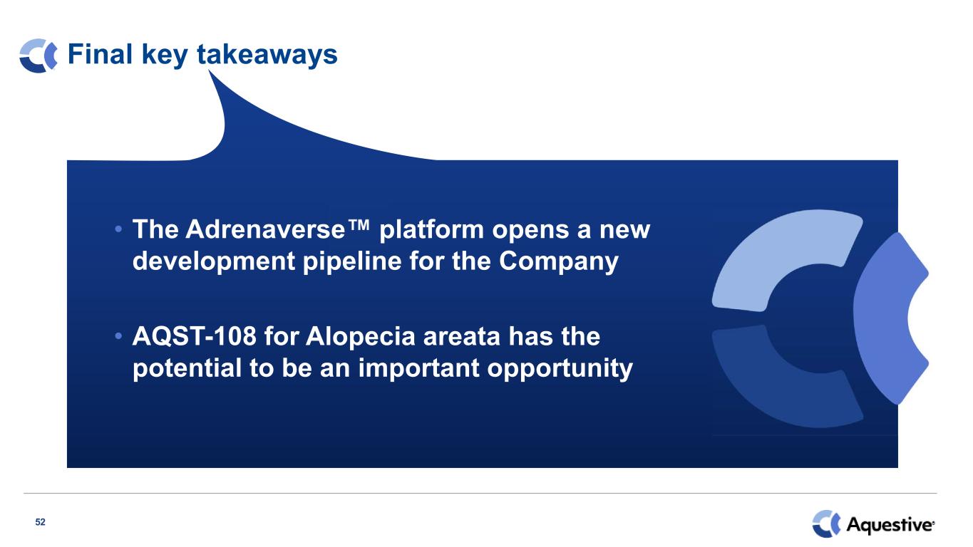 Final key takeaways • The Adrenaverse platform opens a new development pipeline for the Company • AQST-108 for Alopecia areata has the potential to be an important opportunity 52
