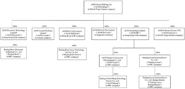 Except where the context otherwise requires and for purposes of this prospectus only, “we,” “us,” “our company,” “Company,” “our” and “AGM Holdings” refer to AGM Group Holdings Inc., a British Virgin Islands company limited by shares. We have the following subsidiaries: