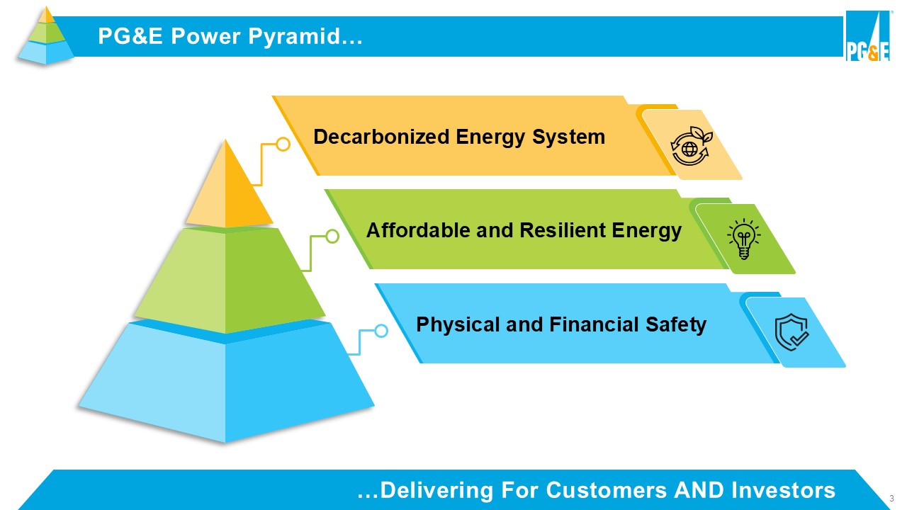 3 …Delivering For Customers AND Investors PG&E Power Pyramid… Physical and Financial Safety Decarbonized Energy System Affordable and Resilient Energy