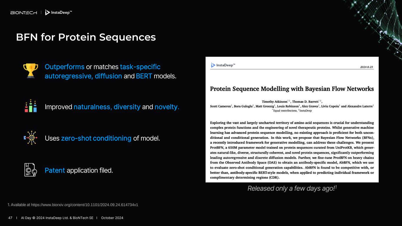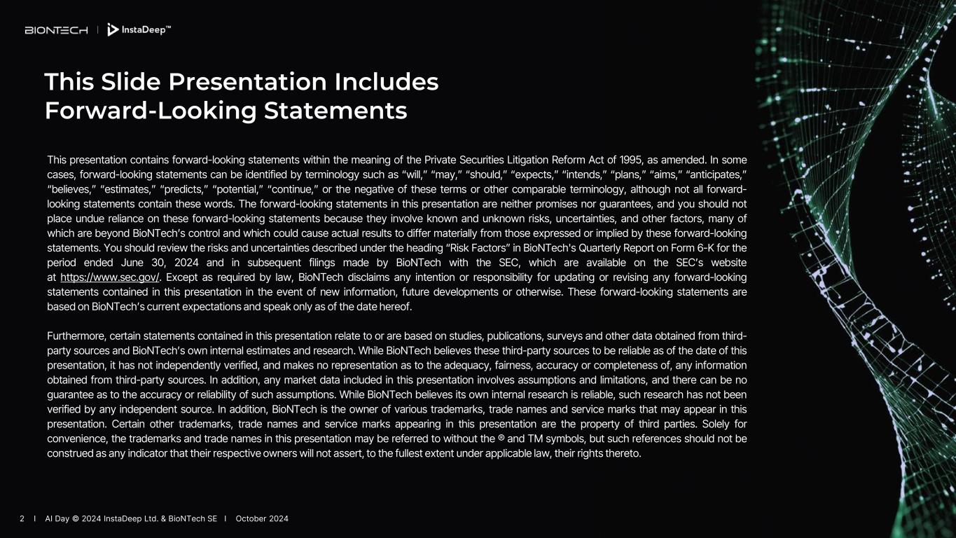On October 1, 2024, BioNTech SE (the “Company”), alongside its artificial intelligence (“AI”) subsidiary InstaDeep Ltd., is presenting an overview of its AI approach during an edition of the Company’s Innovation Series, AI Day. The press release and presentation are attached as Exhibits 99.1 and 99.2, respectively.