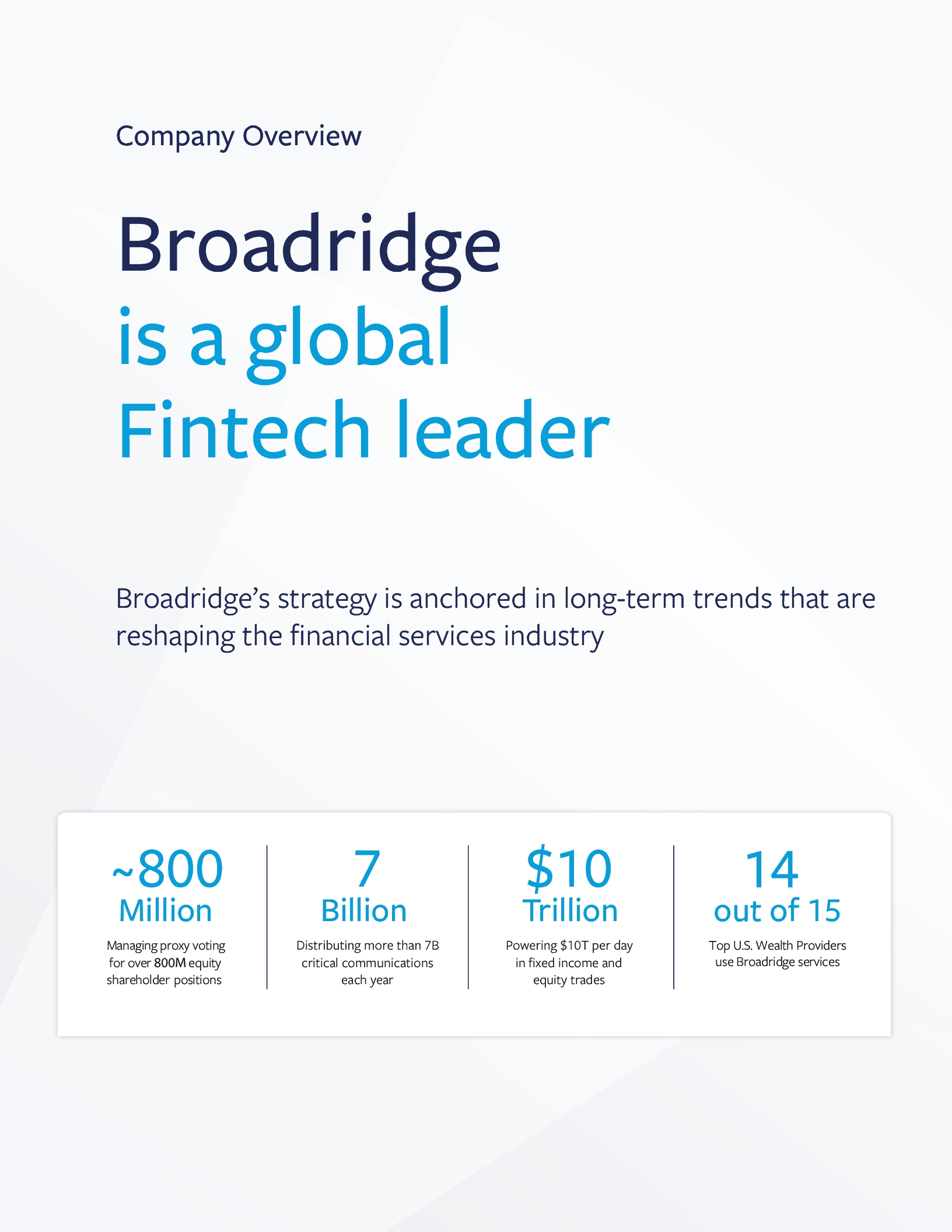 The Broadridge financial model is focused on driving steady revenue growth and consistent earnings per share (“EPS”) growth, generated by: | |||||||||||