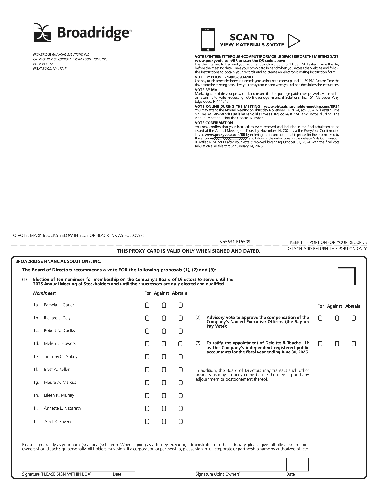 You may also vote during the virtual Annual Meeting by visiting virtualshareholdermeeting.com/BR24 and following the instructions. You will need the Control Number included on your proxy card, voting instruction form or Notice of Internet Availability of Proxy Materials. | |||||
