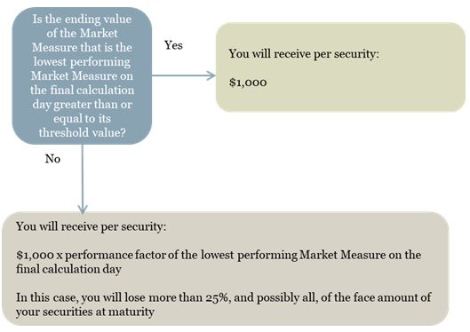 will depend, in each case, on the closing value of the lowest performing Market Measure on the relevant calculation day. The lowest performing Market Measure on any calculation day is the Market Measure that has the lowest closing value