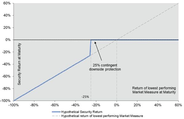■ If the securities are not automatically called prior to stated maturity, you will have full downside exposure to the lowest performing Market Measure from its starting value if its