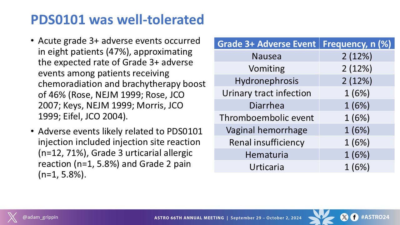 Versamune® HPV appeared to be safe and well-tolerated. The most common treatment-related toxicities were injection site reactions in twelve patients (71%).