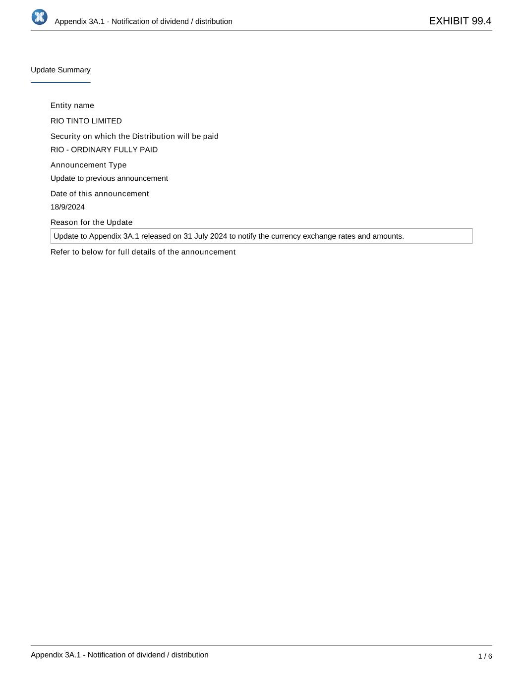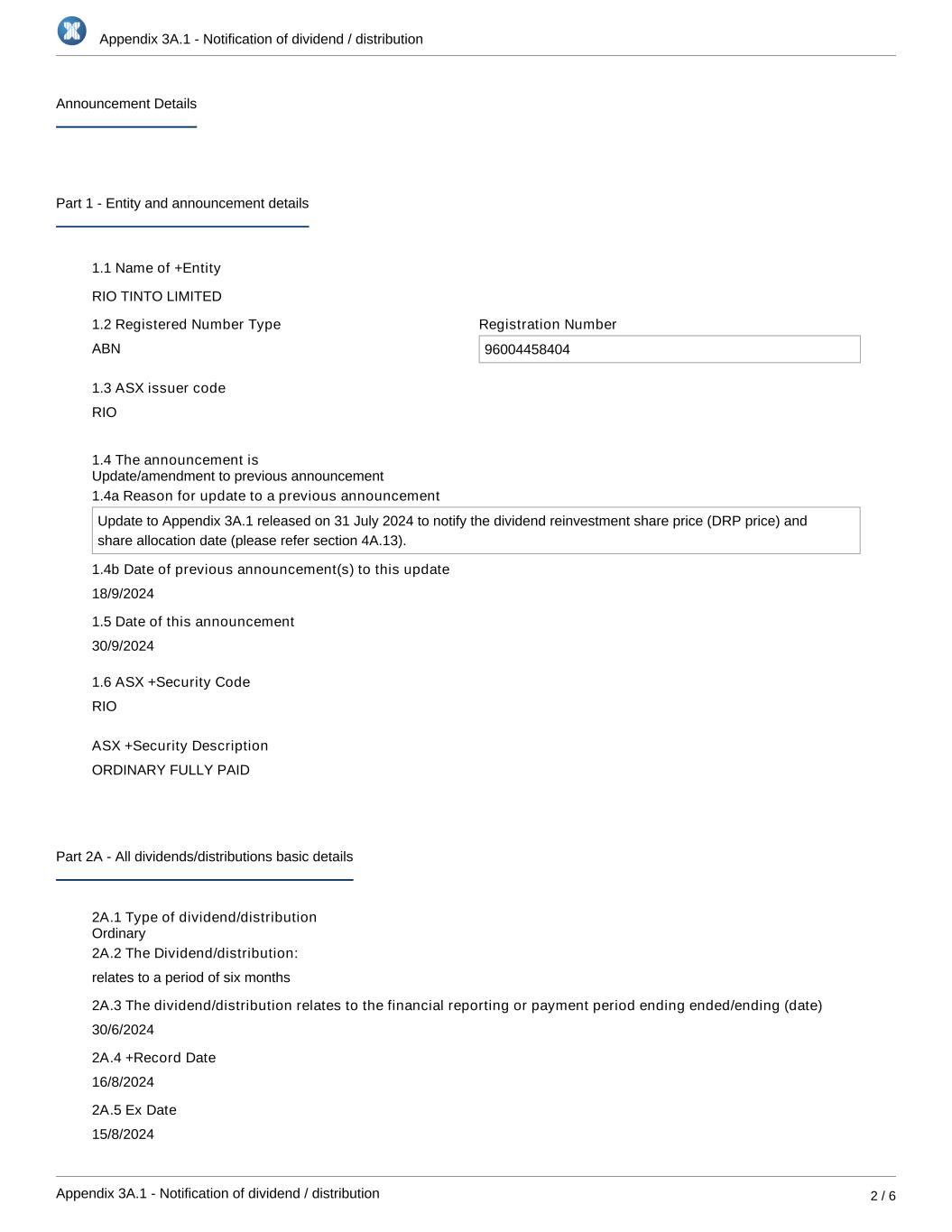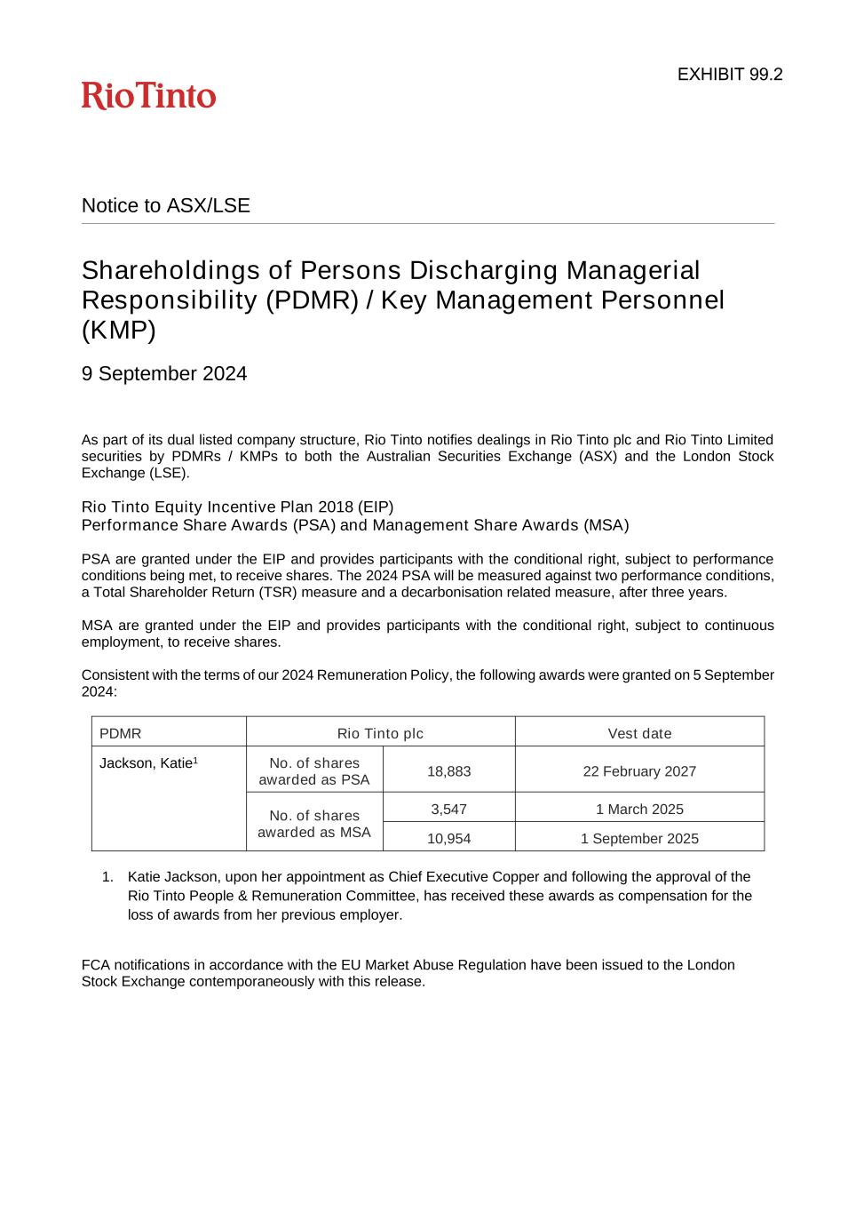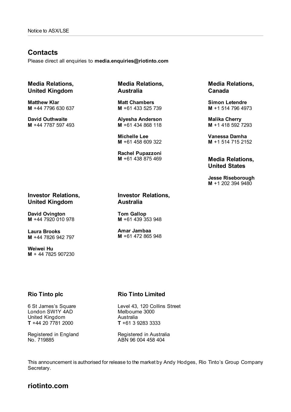 Rio Tinto plc | Rio Tinto Limited | ||