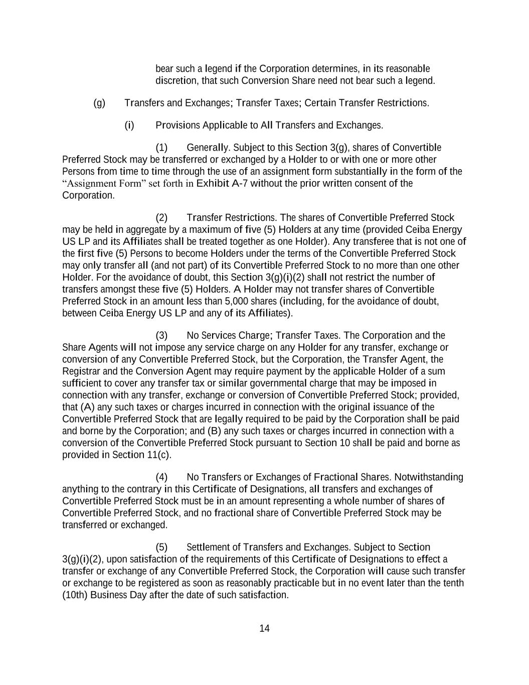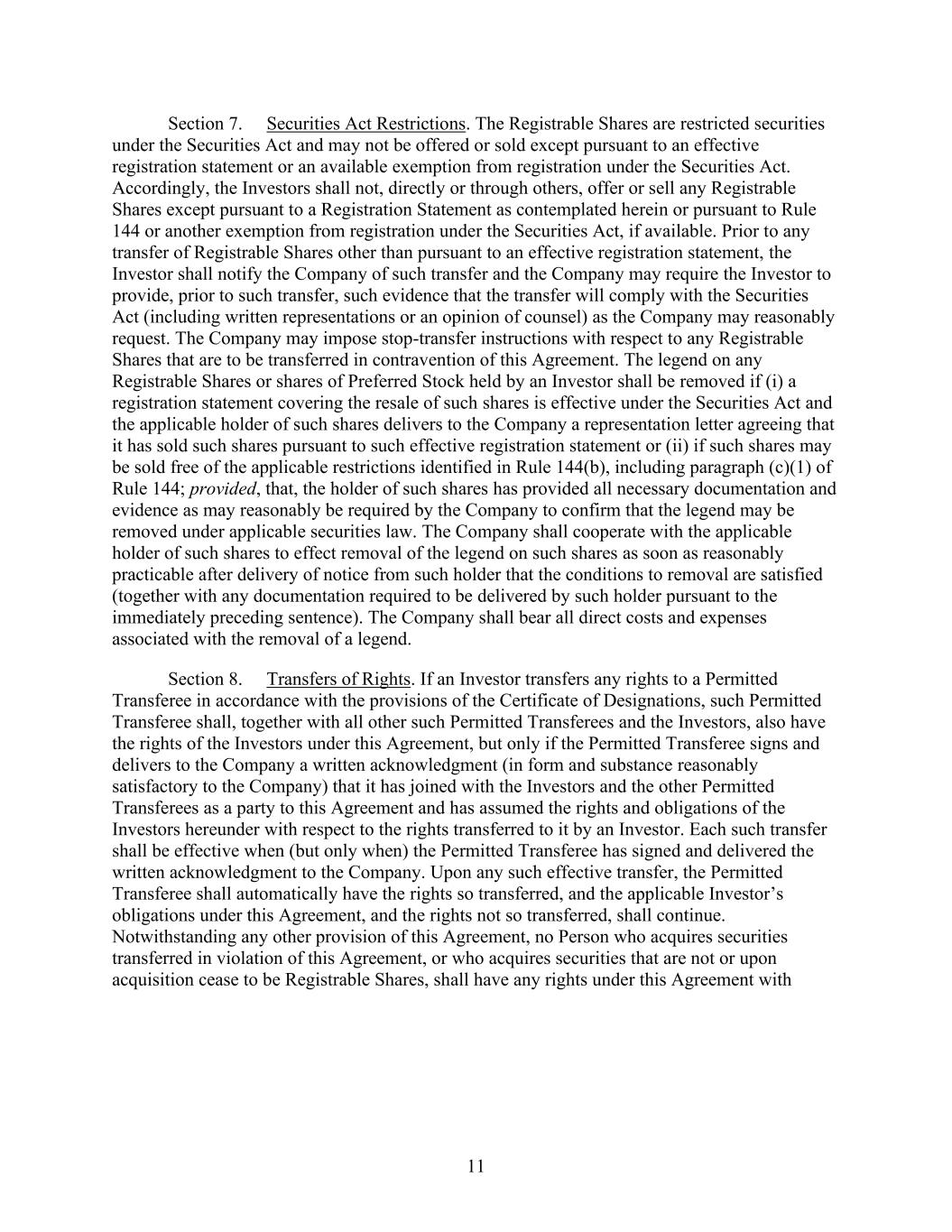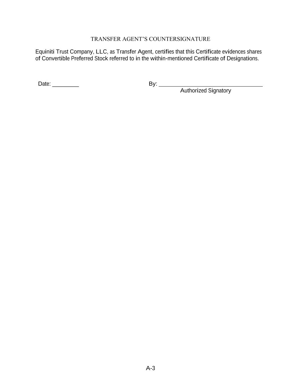 4855-6127-4071v.184855-6127-4071v.9 17 2464916.03A-NYCSR03A - MSW (h) Restriction on Sale of Securities. During a period of 45 days from the date of the Prospectus (the “Lock-Up Period”), the Company will not, without the prior written consent of the Representative, (i) directly or indirectly, offer, pledge, sell, contract to sell, sell any option or contract to purchase, purchase any option or contract to sell, grant any option, right or warrant to purchase or otherwise transfer or dispose of any Common Stock or any securities convertible into or exercisable or exchangeable for Common Stock or file any registration statement under the Securities Act with respect to any of the foregoing or (ii) enter into any swap or any other agreement or any transaction that transfers, in whole or in part, directly or indirectly, the economic consequence of ownership of the Common Stock or any securities convertible into or exercisable or exchangeable for Common Stock, whether any such swap or transaction described in clause (i) or (ii) above is to be settled by delivery of Common Stock or such other securities, in cash or otherwise. Further, during the Lock-Up Period, the Company will not, without the prior written consent of the Representative, open a trading window, as described in the Company’s Insider Trading Compliance Policy as in effect as of the date hereof. The foregoing sentence shall not apply to (A) the Shares to be sold hereunder, (B) any Common Stock issued by the Company upon the exercise of an option or warrant or the conversion of a security outstanding on the date hereof or at the Closing Time and referred to in the Registration Statement, Time of Sale Prospectus and Prospectus, (C) any grants of Common Stock, share options, restricted shares, notional units or other equity or equity-based securities to employees, directors, contractors, or other individuals eligible to receive awards pursuant to the terms of any plan in effect as of the Closing Time and described in the Registration Statement, Time of Sale Prospectus and Prospectus, or the issuance of Common Stock pursuant to the exercise, vesting, or settlement of any award granted pursuant to the Company’s equity incentive plans that are described in the Registration Statement, Time of Sale Prospectus and Prospectus, (D) any Common Stock issued pursuant to any non-employee director share plan or dividend reinvestment plan referred to in the Registration Statement, Time of Sale Prospectus and Prospectus, (E) enter into an agreement to issue shares of Common Stock, or securities convertible into Common Stock in connection with mergers or acquisition transactions, joint ventures or other strategic corporate transactions, (F) any shares of Common Stock expected to be issued by the Company in connection with the refinancing of certain of the Company’s indebtedness, in such number and as described in the Registration Statement, Time of Sale Prospectus and Prospectus, (G) any shares of preferred stock and any shares of Common Stock underlying such preferred stock expected to be issued by the Company in connection with the exchange of preferred stock as described in the Registration Statement, Time of Sale Prospectus and Prospectus and (H) any registration statement on Form S-8 under the Securities Act with respect to the foregoing clauses (B), (C) and (D); provided that, the holders of Common Stock issued pursuant to (B), (C) or (D) above agree to execute a lock-up letter described in Error! Reference source not found. hereof (to the extent such holder has not previously signed a lock- up letter covering such Class A Shares) or such Class A Shares do not vest until after the expiry of the Lock-Up Period. (i) Reporting Requirements. The Company, during the period when the Prospectus is (or, but for the exception afforded by Rule 172, would be) required to be delivered under the Securities Act, will file all documents required to be filed with the Commission pursuant to the Exchange Act within the time periods required by the Exchange Act and Exchange Act Regulations. Additionally, the Company shall report the use of proceeds from the issuance of the Securities as may be required under Rule 463 under the Securities Act.