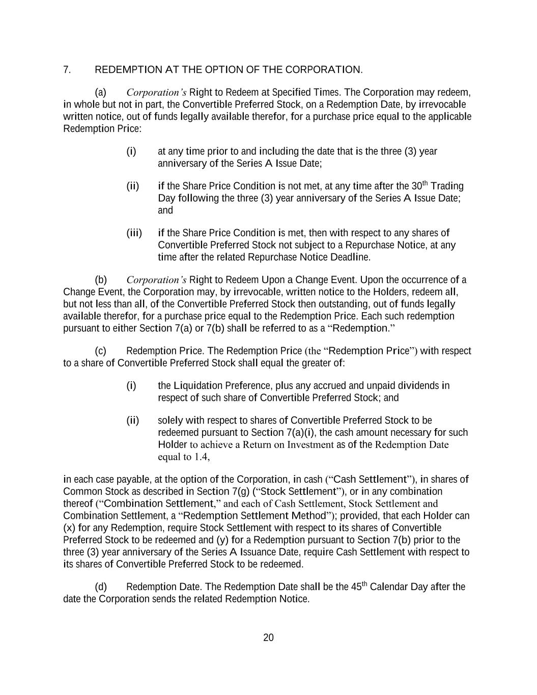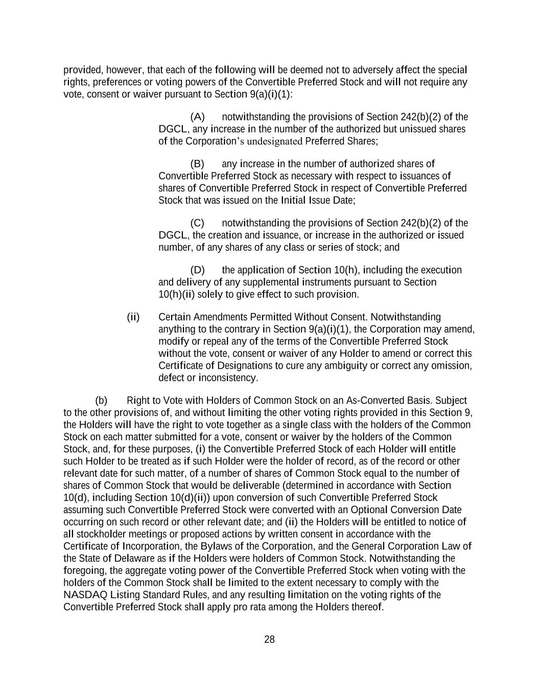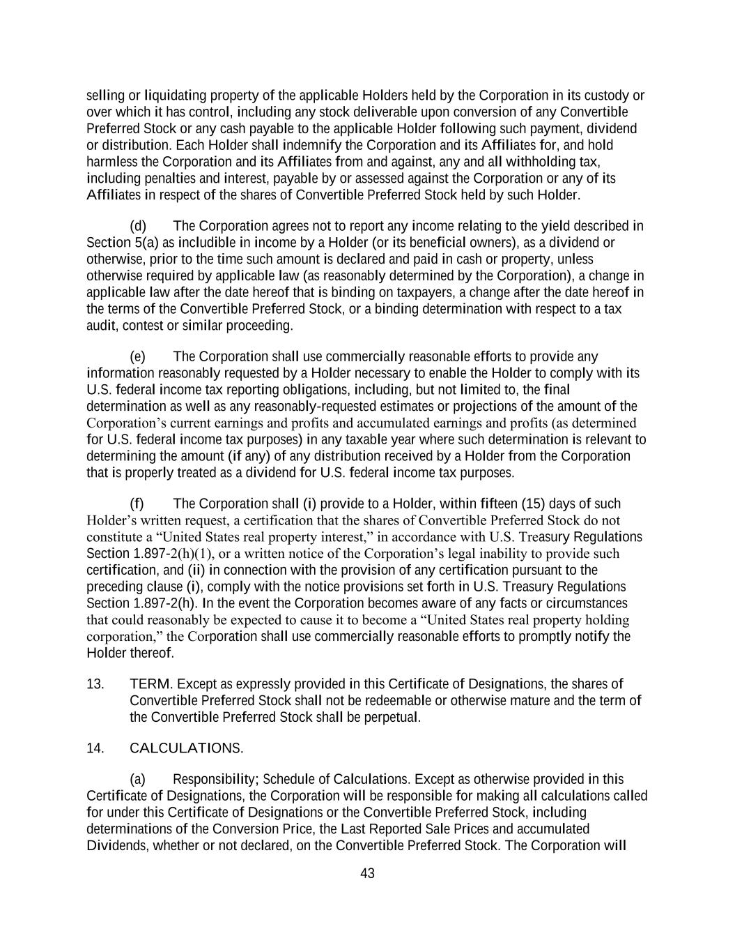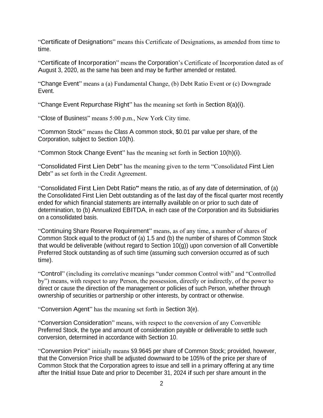 4855-6127-4071v.184855-6127-4071v.9 17 2464916.03A-NYCSR03A - MSW (h) Restriction on Sale of Securities. During a period of 45 days from the date of the Prospectus (the “Lock-Up Period”), the Company will not, without the prior written consent of the Representative, (i) directly or indirectly, offer, pledge, sell, contract to sell, sell any option or contract to purchase, purchase any option or contract to sell, grant any option, right or warrant to purchase or otherwise transfer or dispose of any Common Stock or any securities convertible into or exercisable or exchangeable for Common Stock or file any registration statement under the Securities Act with respect to any of the foregoing or (ii) enter into any swap or any other agreement or any transaction that transfers, in whole or in part, directly or indirectly, the economic consequence of ownership of the Common Stock or any securities convertible into or exercisable or exchangeable for Common Stock, whether any such swap or transaction described in clause (i) or (ii) above is to be settled by delivery of Common Stock or such other securities, in cash or otherwise. Further, during the Lock-Up Period, the Company will not, without the prior written consent of the Representative, open a trading window, as described in the Company’s Insider Trading Compliance Policy as in effect as of the date hereof. The foregoing sentence shall not apply to (A) the Shares to be sold hereunder, (B) any Common Stock issued by the Company upon the exercise of an option or warrant or the conversion of a security outstanding on the date hereof or at the Closing Time and referred to in the Registration Statement, Time of Sale Prospectus and Prospectus, (C) any grants of Common Stock, share options, restricted shares, notional units or other equity or equity-based securities to employees, directors, contractors, or other individuals eligible to receive awards pursuant to the terms of any plan in effect as of the Closing Time and described in the Registration Statement, Time of Sale Prospectus and Prospectus, or the issuance of Common Stock pursuant to the exercise, vesting, or settlement of any award granted pursuant to the Company’s equity incentive plans that are described in the Registration Statement, Time of Sale Prospectus and Prospectus, (D) any Common Stock issued pursuant to any non-employee director share plan or dividend reinvestment plan referred to in the Registration Statement, Time of Sale Prospectus and Prospectus, (E) enter into an agreement to issue shares of Common Stock, or securities convertible into Common Stock in connection with mergers or acquisition transactions, joint ventures or other strategic corporate transactions, (F) any shares of Common Stock expected to be issued by the Company in connection with the refinancing of certain of the Company’s indebtedness, in such number and as described in the Registration Statement, Time of Sale Prospectus and Prospectus, (G) any shares of preferred stock and any shares of Common Stock underlying such preferred stock expected to be issued by the Company in connection with the exchange of preferred stock as described in the Registration Statement, Time of Sale Prospectus and Prospectus and (H) any registration statement on Form S-8 under the Securities Act with respect to the foregoing clauses (B), (C) and (D); provided that, the holders of Common Stock issued pursuant to (B), (C) or (D) above agree to execute a lock-up letter described in Error! Reference source not found. hereof (to the extent such holder has not previously signed a lock- up letter covering such Class A Shares) or such Class A Shares do not vest until after the expiry of the Lock-Up Period. (i) Reporting Requirements. The Company, during the period when the Prospectus is (or, but for the exception afforded by Rule 172, would be) required to be delivered under the Securities Act, will file all documents required to be filed with the Commission pursuant to the Exchange Act within the time periods required by the Exchange Act and Exchange Act Regulations. Additionally, the Company shall report the use of proceeds from the issuance of the Securities as may be required under Rule 463 under the Securities Act.