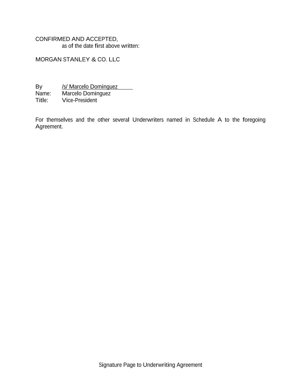 Signature Page to Underwriting Agreement CONFIRMED AND ACCEPTED, as of the date first above written: MORGAN STANLEY & CO. LLC By /s/ Marcelo Dominguez Name: Marcelo Dominguez Title: Vice-President For themselves and the other several Underwriters named in Schedule A to the foregoing Agreement.