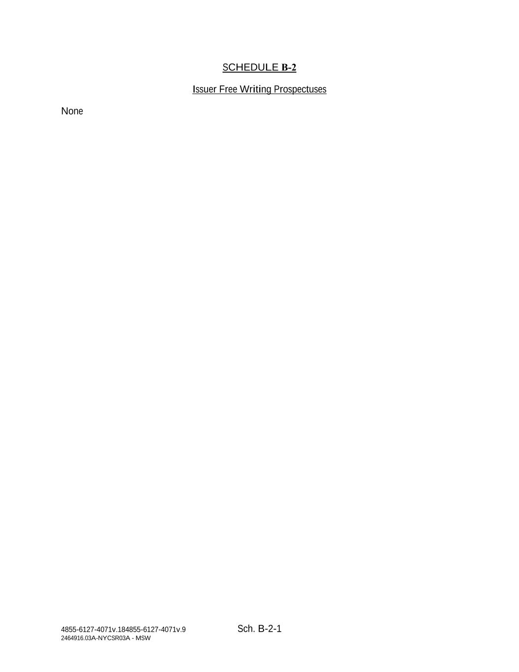 4855-6127-4071v.184855-6127-4071v.9 Sch. B-2-1 2464916.03A-NYCSR03A - MSW SCHEDULE B‑2 Issuer Free Writing Prospectuses None