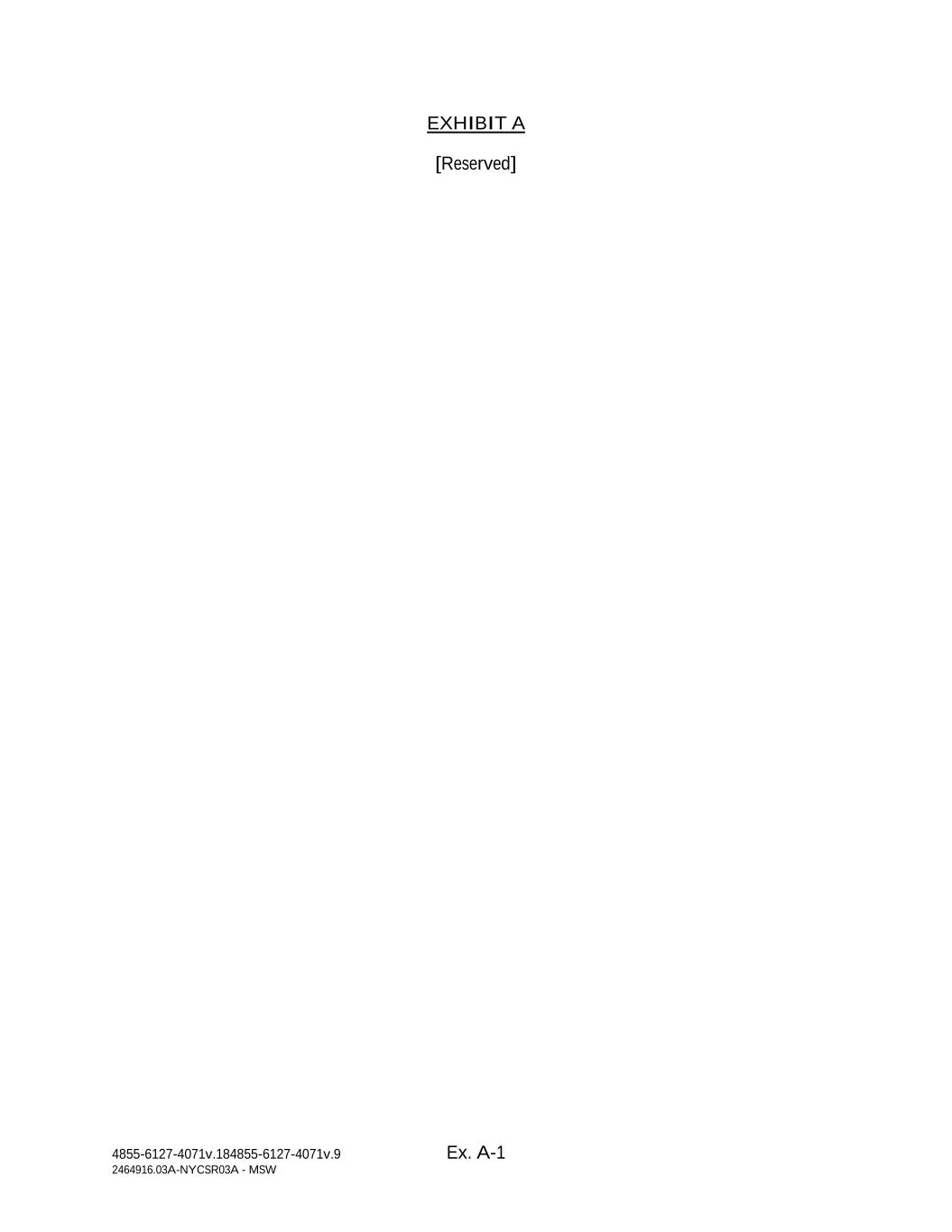 4855-6127-4071v.184855-6127-4071v.9 Ex. A-1 2464916.03A-NYCSR03A - MSW EXHIBIT A [Reserved]