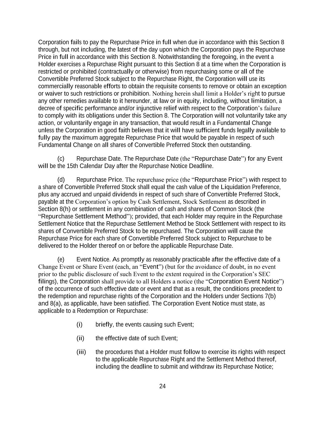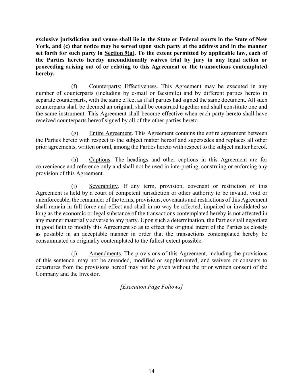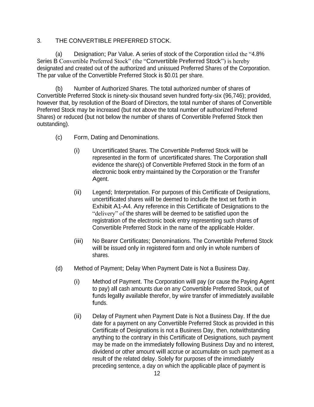4855-6127-4071v.184855-6127-4071v.9 15 2464916.03A-NYCSR03A - MSW Payment shall be made to the Company by wire transfer of immediately available funds to the bank account designated by the Company against delivery to the Underwriters of the Shares to be purchased by the Underwriters. SECTION 3. Covenants of the Company. The Company covenants with the Underwriters as follows: (a) Compliance with Securities Regulations and Commission Requests. The Company, subject to Section 3(b), will comply with the requirements of Rule 430A, and will notify the Underwriters as soon as practicable (i) when any post-effective amendment to the Registration Statement shall become effective or any amendment or supplement to the Prospectus shall have been filed, (ii) of the receipt of any comments from the Commission, (iii) of any request by the Commission for any amendment to the Registration Statement or any amendment or supplement to the Time of Sale Prospectus or the Prospectus or for additional information, (iv) of the issuance by the Commission of any stop order suspending the effectiveness of the Registration Statement or any post-effective amendment or of any order preventing or suspending the use of any preliminary prospectus or the Prospectus, or of the suspension of the qualification of the Securities for offering or sale in any jurisdiction, or of the initiation or threatening of any proceedings for any of such purposes or of any examination pursuant to Section 8(d) or 8(e) of the Securities Act concerning the Registration Statement and (v) if the Company becomes the subject of a proceeding under Section 8A of the Securities Act in connection with the offering of the Shares . The Company will effect all filings required under Rule 424(b) in the manner and within the time period required by Rule 424(b) (without reliance on Rule 424(b)(8)). The Company will make every commercially reasonable effort to prevent the issuance of any stop order, prevention or suspension and, if any such order is issued, to obtain the lifting thereof as soon as practicable. (b) Continued Compliance with Securities Laws. The Company will comply with the Securities Act and the Securities Act Regulations so as to permit the completion of the distribution of the Shares as contemplated in this Agreement and in the Registration Statement, Time of Sale Prospectus and Prospectus. If at any time when a prospectus relating to the Shares is (or, but for the exception afforded by Rule 172 of the Securities Act Regulations (“Rule 172”), would be) required by the Securities Act to be delivered in connection with sales of the Securities, any event shall occur or condition shall exist as a result of which it is necessary, in the opinion of counsel for the Underwriters or for the Company, to (i) amend the Registration Statement in order that the Registration Statement will not include an untrue statement of a material fact or omit to state a material fact required to be stated therein or necessary to make the statements therein not misleading, (ii) amend or supplement the Time of Sale Prospectus or the Prospectus in order that the Time of Sale Prospectus or the Prospectus, as the case may be, will not contain any untrue statement of a material fact or omit to state a material fact necessary in order to make the statements therein not misleading in the light of the circumstances existing at the time it is delivered to a purchaser or (iii) amend the Registration Statement or amend or supplement the Time of Sale Prospectus or the Prospectus, as the case may be, in order to comply with the requirements of the Securities Act or the Securities Act Regulations, the Company will promptly (A) give the Underwriters notice of such event, (B) prepare any amendment or supplement as may be necessary to correct such statement or omission or to make the Registration Statement, the Time of Sale Prospectus or the Prospectus comply with such requirements and, a reasonable amount of time prior to any proposed filing or use, furnish the Underwriters with copies of any such amendment