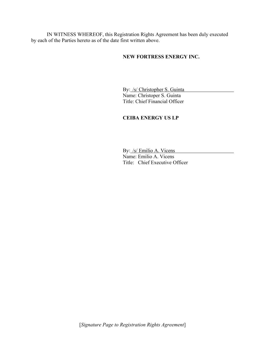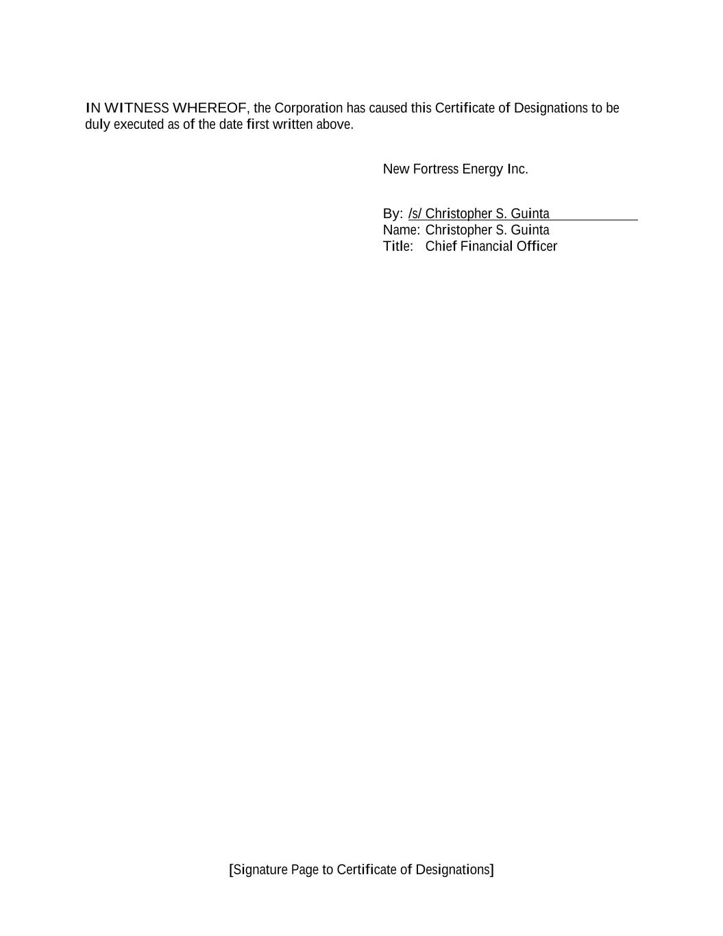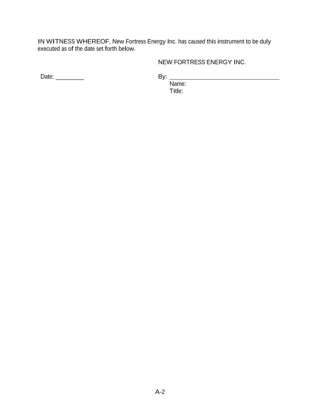 Signature Page to Underwriting Agreement If the foregoing is in accordance with your understanding, please indicate your acceptance of this Agreement by signing in the space provided below. Very truly yours, NEW FORTRESS ENERGY INC. By /s/ Christopher Guinta Name: Christopher Guinta Title: Chief Financial Officer