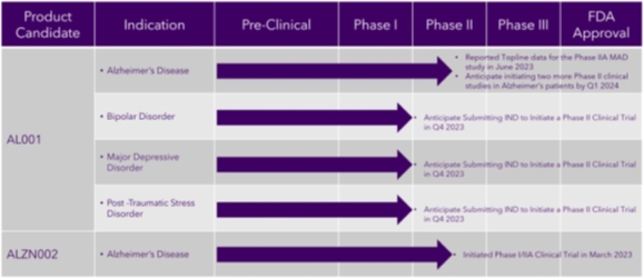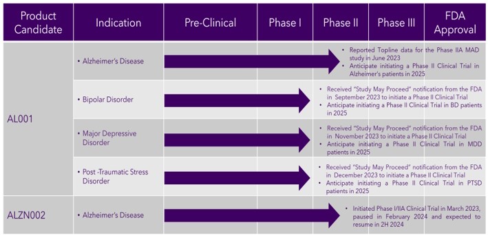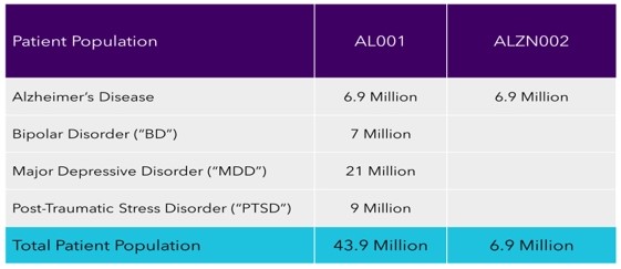 | · | Serious adverse events or other safety risks could require us to abandon development and preclude, delay or limit approval of AL001 or ALZN002, or limit the scope of any approved label or market acceptance. |