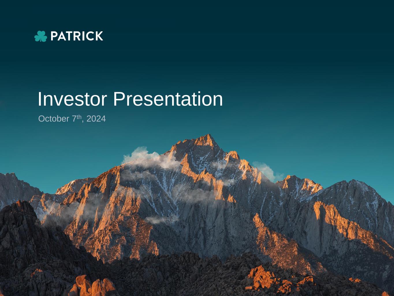 Investor Presentation October 7th, 2024